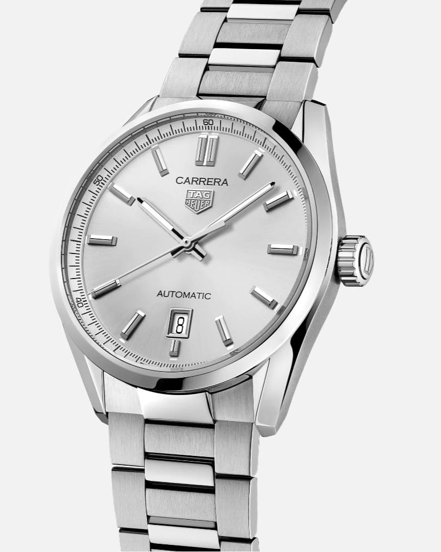 Мужские швейцарские часы TAG Heuer Carrera WBN2111.BA0639, механический механизм (автоматический калибр) с высокой точностью. Сапфировое стекло устойчивое к появлению царапин, обладающее высокой прозрачностью. Класс водозащиты: 100 метров, позволит плавать, нырять и заниматься другими водными видами спорта. Корпус часов изготовлен из стали, серебристого цвета. Матовый серебристый циферблат с узором "солнечные лучи" - олицетворение роскоши, подчеркнутой функциональным и элегантным родиевым логотипом TAG Heuer, стрелками и индексами с покрытием Super-Luminova®.