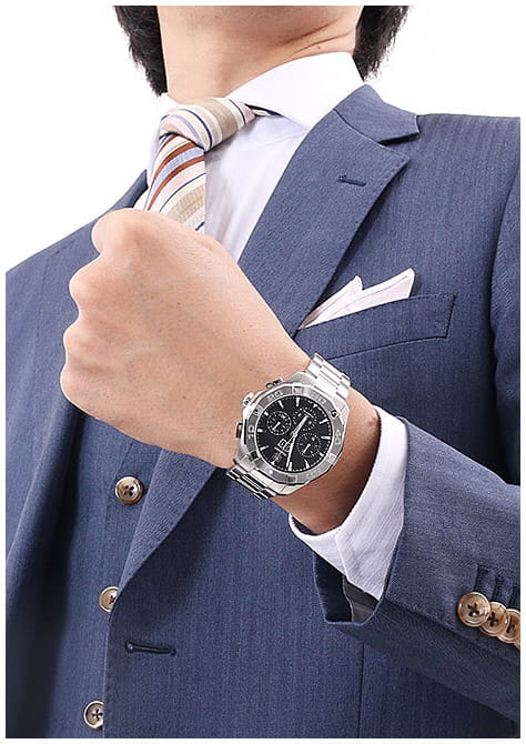 Наручные часы-хронографХронографФункция позволяет измерять отрезки времени с особой точностью: часы, минуты, секунды. Верным признаком хронографа является наличие на циферблате 3 дополнительных окошек-счётчиков. TAG Heuer Carrera CAY211Z.BA0926 олицетворяют собой спортивный стиль и высокие технологии. Механический механизм (автоматический калибр) CALIBRE 45 с высокой точностью производится целиком в стенах компании. Стальной корпус с фиксированным безелемБезельВнешний ободок, закрепляющий стекло. В спортивных часах так называется поворотное кольцо с делениями на циферблате, выполняет роль таймера – замеряет отрезки времени на шкале. Неподвижный безель – элемент декора. Однонаправленно вращающийся безель на дайверских часах позволяет фиксировать моменты погружения и выныривания на поверхность.. Диаметр часов 43 мм.Сапфировое стеклоСапфировое стеклоПрочный и надёжный материал из кристалла сапфира синтетического происхождения, характеризующийся особой твёрдостью и устойчивостью к царапинам и повреждениям. устойчивое к появлению царапин, обладающее высокой прозрачностью.Люминесцентная подсветкаЛюминесцентное покрытиеПозволяет считывать показания времени в темноте. Производители наносят на стрелки, часовые индексы, безель или поверхность циферблата светонакопительный состав, дающий холодное свечение. стрелок и меток на циферблате. Класс водозащиты: 300 метров. Раскладная застёжкаРаскладная застёжкаТакой тип застёжки используется только на браслетах из металла. Она никогда не раскрывается полностью, происходит разделение на 2 и более частей. Раскладывающая застёжка снизит вероятность потери часов к минимуму.. Запас хода составляет 40 часов.