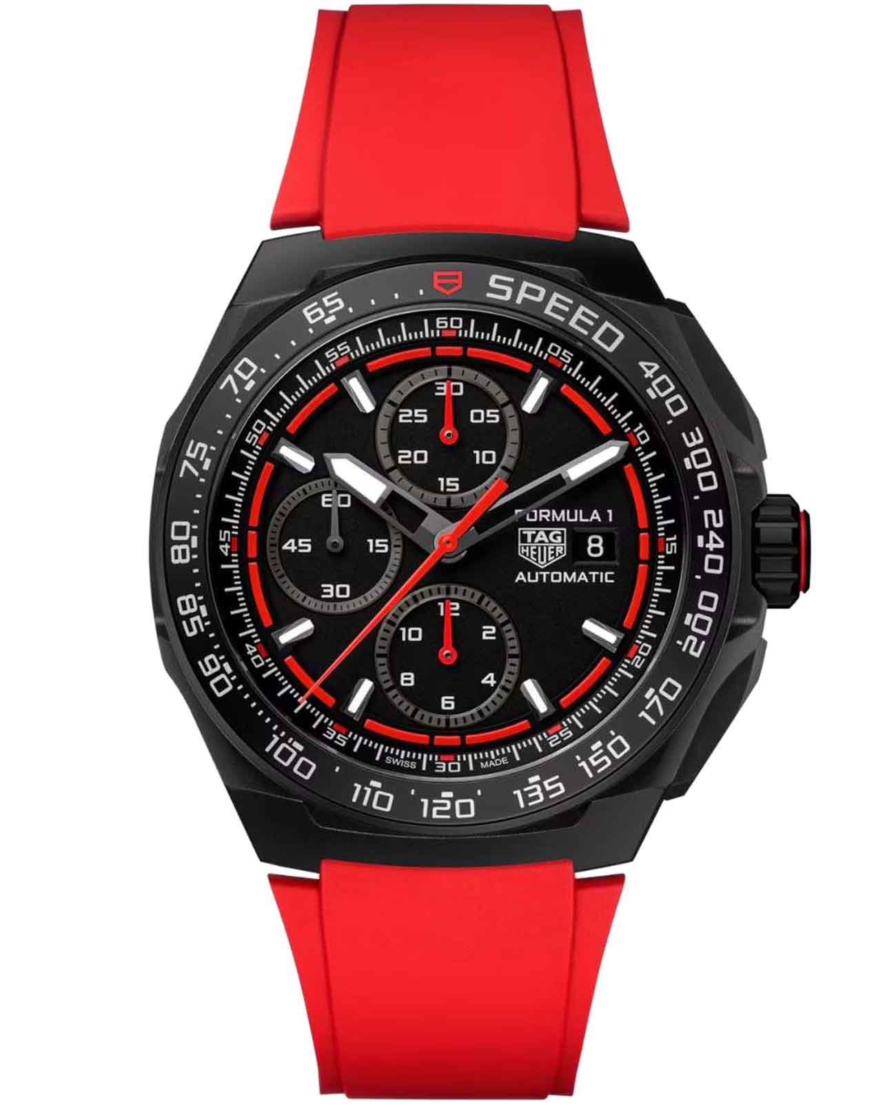 Мужские механические часы TAG Heuer Formula 1 Chronograph CBZ2085.FT8093 — это стильное сочетание элегантности и современного дизайна. Корпус из титана 2-го класса диаметром 44 мм c DLC-покрытиемDLC-покрытиеDiamond like carbon - одно из лучших видов покрытия, представляющее собой углерод с алмазными свойствами. На поверхность материала наносятся распавшиеся молекулы углерода, превращающиеся в плёнку из алмазоподобных связей, которая перенимает твёрдость алмаза. идеально сбалансирован и элегантен. Сапфировое стеклоСапфировое стеклоПрочный и надёжный материал из кристалла сапфира синтетического происхождения, характеризующийся особой твёрдостью и устойчивостью к царапинам и повреждениям. с антибликовым покрытием защищает циферблат от царапин и обеспечивает отличную читаемость при любом освещении. Резиновый ремешок на стандартной застежке идеально дополняют дизайн часов, обеспечивая комфортное ношение. Стрелки и метки на циферблате имеют люминесцентное покрытиеЛюминесцентное покрытиеПозволяет считывать показания времени в темноте. Производители наносят на стрелки, часовые индексы, безель или поверхность циферблата светонакопительный состав, дающий холодное свечение. позволяющее легко определять время даже в темноте. БезельБезельВнешний ободок, закрепляющий стекло. В спортивных часах так называется поворотное кольцо с делениями на циферблате, выполняет роль таймера – замеряет отрезки времени на шкале. Неподвижный безель – элемент декора. Однонаправленно вращающийся безель на дайверских часах позволяет фиксировать моменты погружения и выныривания на поверхность. тахиметраТахиметрРазмеченная шкала, располагается на ободке или безеле часов. Тахиметр позволяет рассчитать скорость на определённом участке пути, расстояние измеряется в километрах или милях. подчёркивает спортивное наследие часов. Часы обладают впечатляющей водонепроницаемостью до 20 бар (200 метров), что делает их идеальными для плавания, ныряния и погружений с аквалангом. Автоматический хронографХронографФункция позволяет измерять отрезки времени с особой точностью: часы, минуты, секунды. Верным признаком хронографа является наличие на циферблате 3 дополнительных окошек-счётчиков. обеспечивает точное измерение времени на каждом круге. Запас хода до 42 часов. Прочная конструкция часов и высокопроизводительный механизм делают их идеальным спутником для любителей гонок.