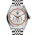 Часы TAG Heuer Carrera Astronomer WBX2111.BD0002 созданы для стильных мужчин. Механический механизм (автоматический калибр) с высокой точностью и с 50-часовым запасом хода. Сапфировое стеклоСапфировое стеклоПрочный и надёжный материал из кристалла сапфира синтетического происхождения, характеризующийся особой твёрдостью и устойчивостью к царапинам и повреждениям. устойчивое к появлению царапин, обладающее высокой прозрачностью. Класс водозащиты: 100 метров, позволит плавать, нырять и заниматься другими водными видами спорта. Стрелки с люминесцентным покрытиемЛюминесцентное покрытиеПозволяет считывать показания времени в темноте. Производители наносят на стрелки, часовые индексы, безель или поверхность циферблата светонакопительный состав, дающий холодное свечение. позволяют легко считывать время даже в условиях недостаточного освещения. Завинчивающаяся задняя крышка украшена специальной гравировкой с изображением обсерватории и звёздного неба. По центру, у отметки «6 часов», расположен серебристый диск указателя фаз Луны, обрамлённый оригинальной шкалой, которая позволяет визуально следить за ходом лунного цикла. Часы оснащены браслетом из нержавеющей стали с 18-ти каратным золотом 5N и с застёжкой-бабочка с кнопкамиЗастёжка "бабочка"Такой вид застёжки дополняется предохранителями, помогающими избежать случайного раскрытия браслета. Обладают изящным исполнением. , которые гарантируют комфортную посадку на запястье. Модель выпущена ограниченной серией 500 экземпляров. TAG Heuer Carrera олицетворяет непринужденную элегантность и представляет свежий взгляд на настоящую классику.