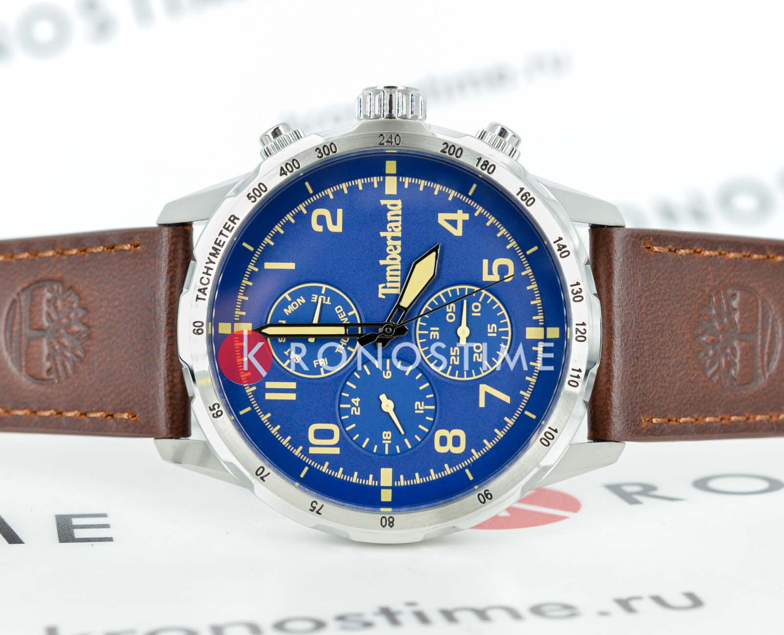 Американские мужские часы-хронографХронографФункция позволяет измерять отрезки времени с особой точностью: часы, минуты, секунды. Верным признаком хронографа является наличие на циферблате 3 дополнительных окошек-счётчиков. c тахиметромТахиметрРазмеченная шкала, располагается на ободке или безеле часов. Тахиметр позволяет рассчитать скорость на определённом участке пути, расстояние измеряется в километрах или милях. Timberland TDWGF0055401 — это сочетание надежности, функциональности и уверенного стиля. Модель идеально подойдет для тех, кто ценит точность и выносливость в каждой детали. Часы оснащены кварцевым механизмом , гарантирующим высокую точность хода и минимальное обслуживание. В конструкции использовано прочное минеральное стеклоМинеральное стеклоМинеральное стекло представляет собой искусственно выращенный минерал кварца. Такое стекло отличается особой устойчивостью к повреждениям и царапинам. Уступает по некоторым качествам сапфировому стеклу., устойчивое к мелким повреждениям и долговечное в использовании. Корпус выполнен из нержавеющей стали, что обеспечивает стойкость к царапинам и длительный срок службы без потери внешнего вида. Стрелки часов имеют люминесцентное покрытиеЛюминесцентное покрытиеПозволяет считывать показания времени в темноте. Производители наносят на стрелки, часовые индексы, безель или поверхность циферблата светонакопительный состав, дающий холодное свечение., позволяющее считывать время даже в условиях слабого освещения. Дизайн дополнен кожаным ремешком с классической застежкой и системой быстрой замены , что делает использование часов максимально удобным и комфортным при ежедневной носке. Класс водозащиты WR50 позволяет использовать часы в повседневных условиях, включая мытьё рук или прогулки под дождем.