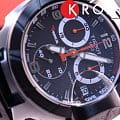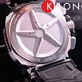 Броский хронографХронографФункция позволяет измерять отрезки времени с особой точностью: часы, минуты, секунды. Верным признаком хронографа является наличие на циферблате 3 дополнительных окошек-счётчиков. в спортивном стиле выразит ваше стремление двигаться только вперёд. Особенным является безельБезельВнешний ободок, закрепляющий стекло. В спортивных часах так называется поворотное кольцо с делениями на циферблате, выполняет роль таймера – замеряет отрезки времени на шкале. Неподвижный безель – элемент декора. Однонаправленно вращающийся безель на дайверских часах позволяет фиксировать моменты погружения и выныривания на поверхность. в необычной мотостилистике. Красная секундная стрелка добавляет динамичности. Каучуковый ремешок обеспечивает невероятный комфорт при ношении. Кварцевый механизм ETA G10.211 с высокой точностью хода. Сапфировое стекло. Корпус из хирургической стали 316L с чёрным PVD-покрытиемPVDУльтратонкое покрытие наносится в технике вакуумного напыления, сочетает в себе нитрид титана особой прочности со слоем золота или оксида хрома. Несёт в себе декоративную или защитную функцию.. Оригинальная задняя крышка в виде колеса. Водонепроницаемость 100 метров. Секундомер, тахиметрТахиметрРазмеченная шкала, располагается на ободке или безеле часов. Тахиметр позволяет рассчитать скорость на определённом участке пути, расстояние измеряется в километрах или милях., апертура даты. Габариты: 50,2 x 45,3 x 12,2 мм.