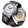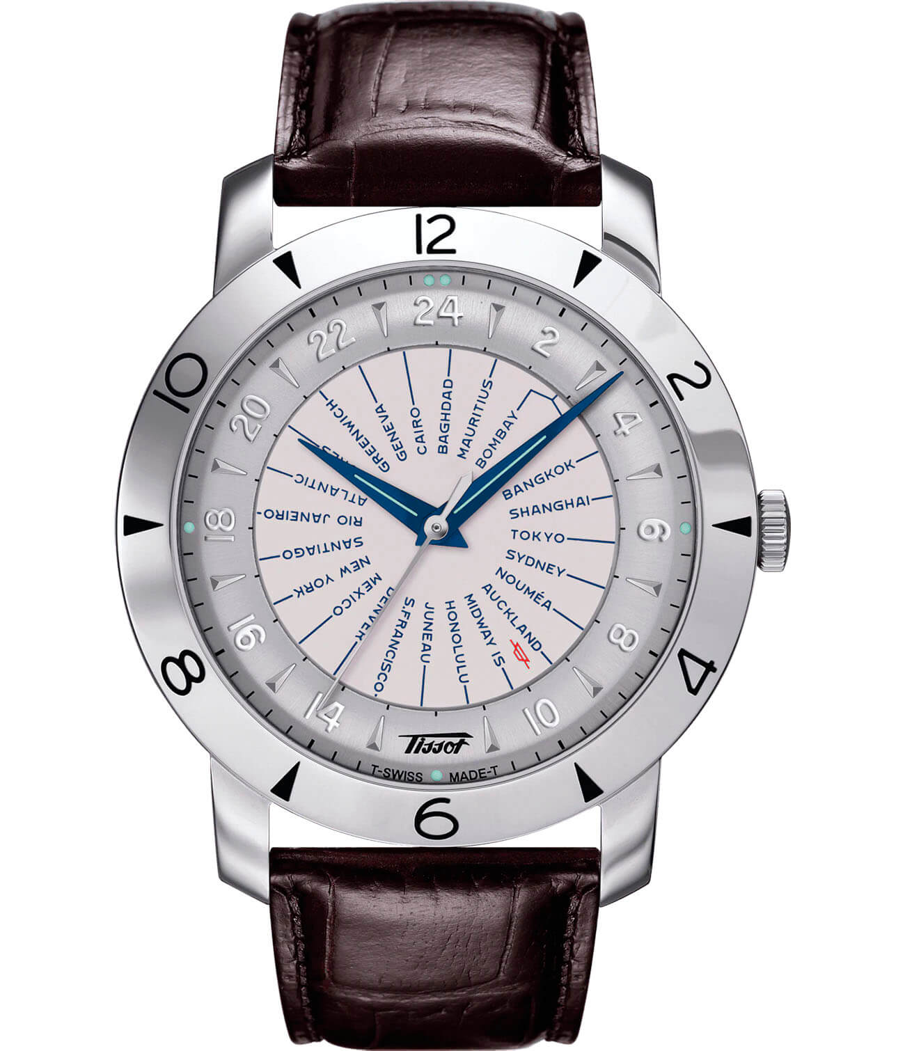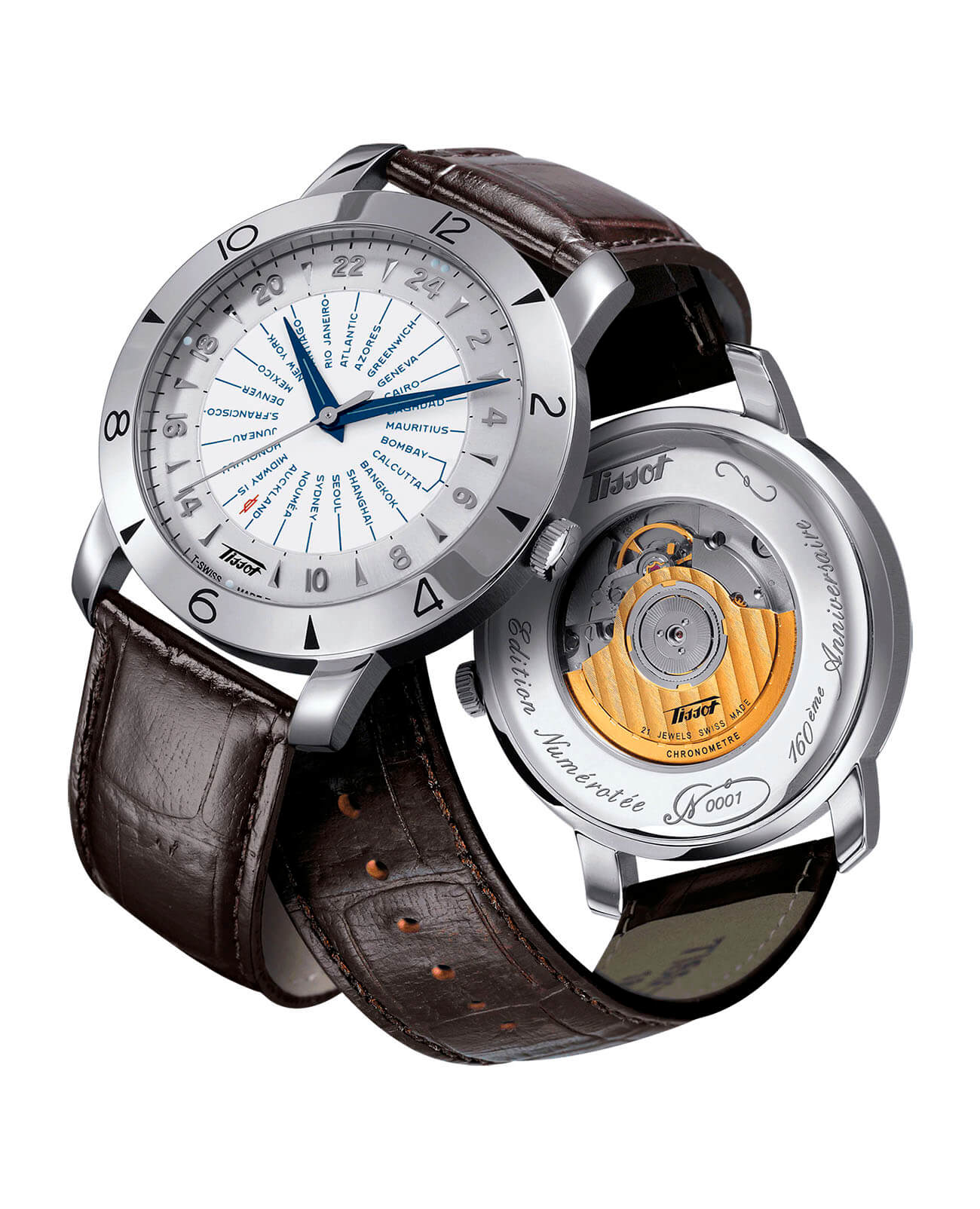 Мужские швейцарские механические часы Heritage Navigator Automatic 160th Anniversary из лимитированной серии. Корпус этих часов крупного размера (43 мм) и выполнен из нержавеющей стали L316 металлического цвета. Модель имеет устойчивое к царапинам cапфировое стеклоСапфировое стеклоПрочный и надёжный материал из кристалла сапфира синтетического происхождения, характеризующийся особой твёрдостью и устойчивостью к царапинам и повреждениям., ремешок из натуральной кожи коричневого цвета, белый циферблат. Калибр механизма: ETA 2893-3. Класс водозащиты: 30 метров, позволит защитить корпус от случайных брызг или капель дождя. Дополнительные функции и особенности: второе время (GMTGMTОтображение времени второго часового пояса.Такая функция особенно актуальна для путешественников и бизнесменов,которые общаются с людьми из разных стран,теперь вы всегда будете знать,какой час у вашего партнёра или близкого человека.), мировое время, сертифицированный хронометр сертификат COSCСертификат COSCОфициальный сертификат, подтверждающий то, что часы ходят с особо высокой точностью. Для получения документа часы подвергаются тестовым испытаниям, разработанным швейцарским институтом тестирования хронометров COSC. Допустимая норма для механических часов -4/+6 секунд в день, для кварцевых моделей +/- 0,07 секунд в день..