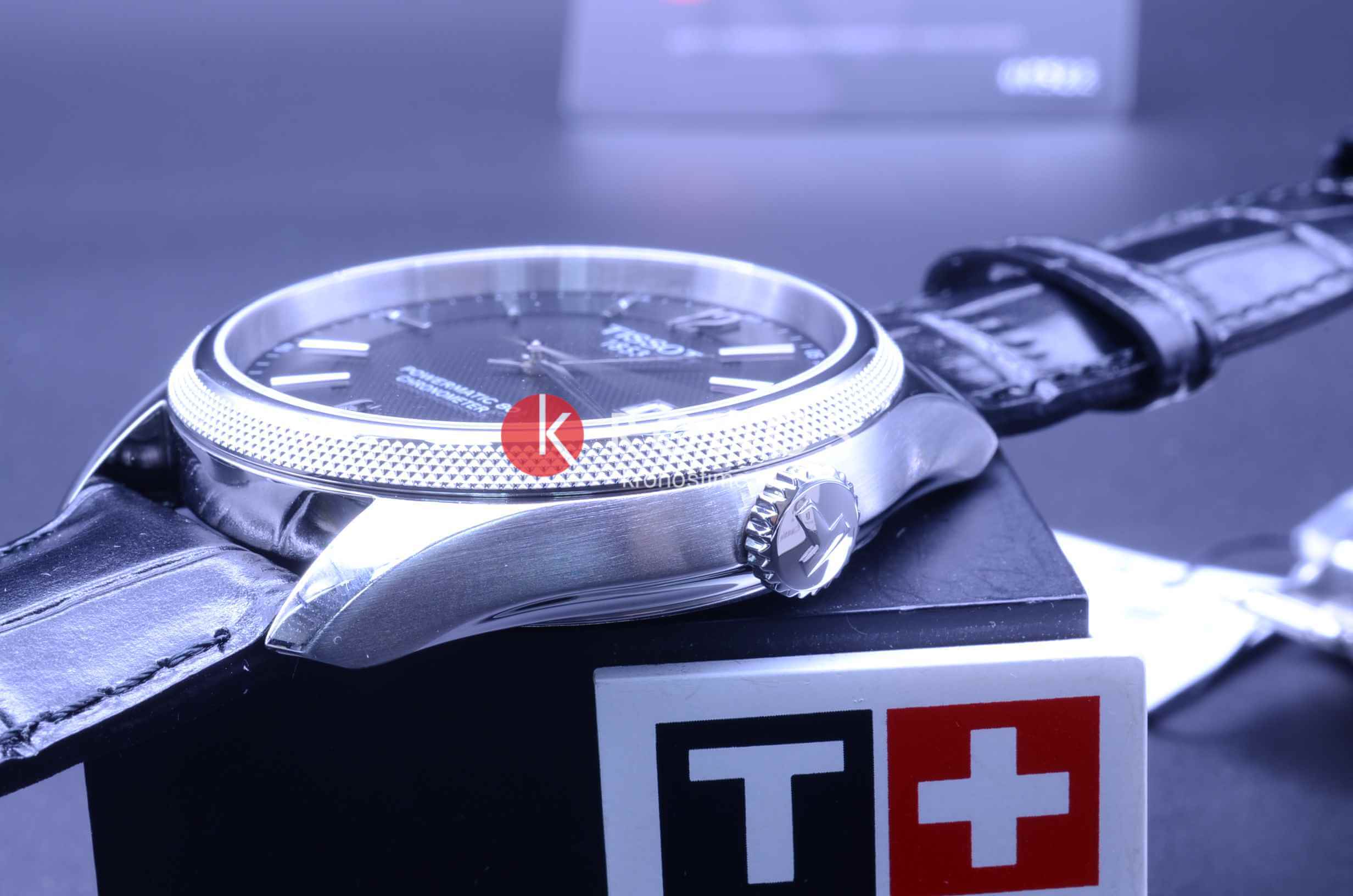 Серебристый безель и чёрный циферблат наделены привлекательным узором. Лаконичное исполнение идеально сочетается с ремешком из натуральной кожи с тиснением под кожу крокодила. Часы комплектуются автоматическим калибром Powermatic 80Powermatic 80Эксклюзивный калибр от швейцарской компании ETA с увеличенным запасом хода до 80 часов за счёт удлинённой заводной пружины. Характеризуется улучшенной системой спуска со сниженным трением., их высокая точность подтверждается сертификатом COSCСертификат COSCОфициальный сертификат, подтверждающий то, что часы ходят с особо высокой точностью. Для получения документа часы подвергаются тестовым испытаниям, разработанным швейцарским институтом тестирования хронометров COSC. Допустимая норма для механических часов -4/+6 секунд в день, для кварцевых моделей +/- 0,07 секунд в день.. Прозрачная задняя крышка. Сапфировое стекло. Водозащита 50 метров. . Окошко даты. Габариты: 39 x 41 x 9,8 мм.