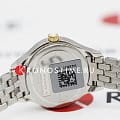 Модель отличается оригинальным внешним видом, традиционные формы выражены в современном облике. Овальный циферблат с римскими цифрами имеет отдельный секундный счётчик, что прибавляет спортивного стиля. Наручные часы отличаются высокой точностью хода благодаря кварцевому механизму ETA 980.153. Корпус и браслет из долговечной стали 316L с антикоррозионными свойствами. Золотистое PVD-покрытиеPVDУльтратонкое покрытие наносится в технике вакуумного напыления, сочетает в себе нитрид титана особой прочности со слоем золота или оксида хрома. Несёт в себе декоративную или защитную функцию.. Кабошон на заводной головке. Сапфировое стекло имеет максимальную устойчивость к царапинам. . Функция EOLEOLПредставляет собой систему, уведомляющую владельца часов о необходимости замены элемента питания. За 2 недели до полного разряда батарейки секундная стрелка перестаёт ходить чётко и начинает перепрыгивать на 3-4 деления.. Габариты: 24,4 x 27,2 x 7,7 мм.