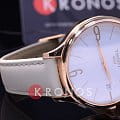 Минималистичный циферблат с PVD-покрытиемPVDУльтратонкое покрытие наносится в технике вакуумного напыления, сочетает в себе нитрид титана особой прочности со слоем золота или оксида хрома. Несёт в себе декоративную или защитную функцию. цвета розового золота станет лучшим решением для дополнения классического или вечернего образа. Дизайнерская модель имеет ремешок из натуральной кожи кремового оттенка, также в комплектацию входит 2 вариант в сером цвете. Кварцевый механизм ETA F06.111 с высокой точностью хода. Надёжное сапфировое стекло. Функция EOLEOLПредставляет собой систему, уведомляющую владельца часов о необходимости замены элемента питания. За 2 недели до полного разряда батарейки секундная стрелка перестаёт ходить чётко и начинает перепрыгивать на 3-4 деления., отображение текущего числа. Габариты: 38 x 38 x 7,1 мм.