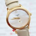 Лаконичный перламутровый циферблат с жемчужной вставкой не оставит равнодушной ни одну модницу. Наручные часы оснащены кварцевым калибром ETA 980.153 с высокой точностью хода. Задняя крышка с узором. Кабашон на заводной головке. Корпус с PVD-покрытиемPVDУльтратонкое покрытие наносится в технике вакуумного напыления, сочетает в себе нитрид титана особой прочности со слоем золота или оксида хрома. Несёт в себе декоративную или защитную функцию. цвета розового золота. Отдельный малый счётчик секунд. Водостойкость до 3 бар. Функция EOLEOLПредставляет собой систему, уведомляющую владельца часов о необходимости замены элемента питания. За 2 недели до полного разряда батарейки секундная стрелка перестаёт ходить чётко и начинает перепрыгивать на 3-4 деления.. Габариты: 28 x 31,4 x 6,6 мм.