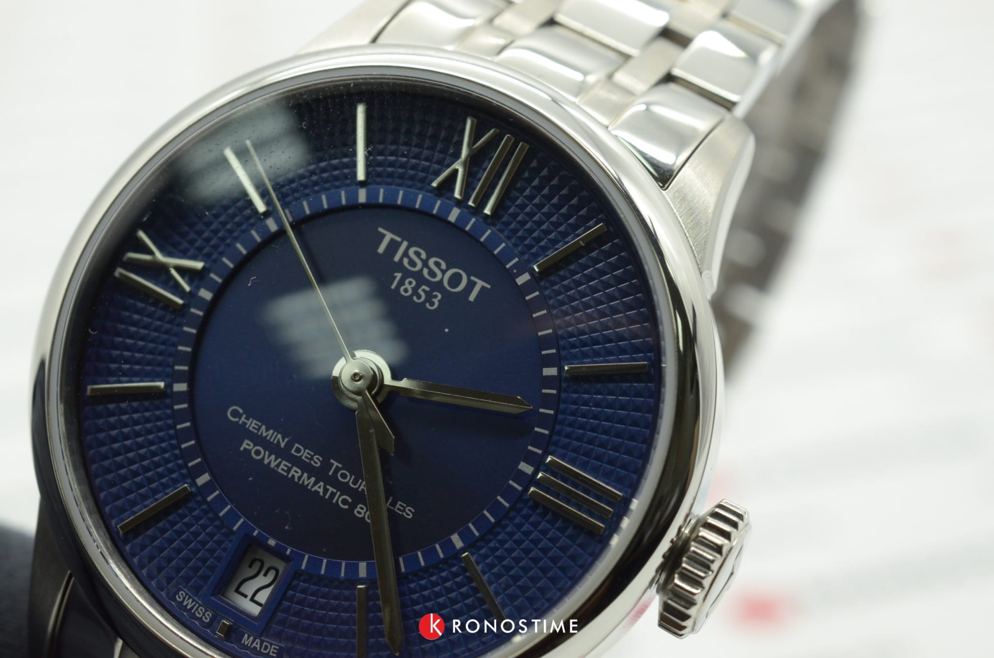Аксессуар воплощает точность и надёжность швейцарских технологий, яркий синий циферблат с узором по окружности дополнен винтажными римскими цифрами и чёткими метками делений. Это механические часы с автоподзаводом, работают от популярного калибра Powermatic 80Powermatic 80Эксклюзивный калибр от швейцарской компании ETA с увеличенным запасом хода до 80 часов за счёт удлинённой заводной пружины. Характеризуется улучшенной системой спуска со сниженным трением. с запасом хода 80 часов. Через прозрачную крышку корпуса можно наблюдать движение его составляющих. Сапфировое стекло. Водонепроницаемость 50 метров. Индикация даты. Габариты: 32 x 32 x 10,7 мм.