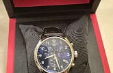 Надпись "Swiss Made" на синем циферблате обозначает, что перед вами - аксессуар настоящего швейцарского качества. Это подтверждается безупречным дизайном, современными материалами, высокой точностью хода с погрешностью +/- 20 сек/мес. Ремешок сделан из натуральной кожи с тиснением под кожу крокодила, что придаёт вашему образу особый статус и деловой облик. Кварцевый калибр ETA G10.212. Хронограф, календарь, секундомер. Габариты: 45 x 45 x 11 мм.