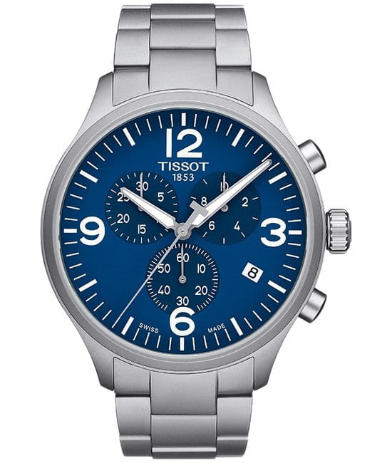 Tissot Chrono XL — это великолепные часы для тех, кто ищет ультрамодный хронограф со спортивным дизайном, изготовленный по швейцарским технологиям Этот спортивный хронограф - один из самых крупных в коллекции Tissot, доступный по невероятно привлекательной цене! Мужские кварцевые наручные часы Корпус этих часов крупного размера (45 мм) и выполнен из нержавеющей стали L316 Модель имеет устойчивое к царапинам сапфировое стекло, браслет из нержавеющей стали , синий циферблат Калибр механизма: ETA G10212 Класс водозащиты: 100 м / 10 АТМ (разрешается плавать ,душ, брызги) Дополнительные функции и особенности: 30-минутный счетчик и счетчик десятых долей секунд, центральная 60-секундная стрелка хронографа, суммарный и сплит-хронограф. Раскладная застежка с кнопками.
