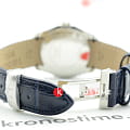 Ярко-синее исполнение модели приковывает взгляды окружающих, насыщенный цвет поможет разбавить строгий наряд без отхождения от общей классической концепции. Серебристые стрелки и часовые метки обеспечивают идеальную читаемость часов, минут, секунд и даты. Ремешок из натуральной кожи. Водонепроницаемость при давлении 10 бар на глубине 100 метров. Циферблат покрывает надёжное сапфировое стекло.