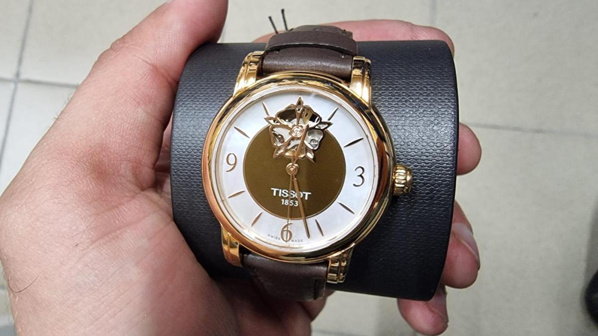 Эксклюзивный дизайн (окошко в виде цветка, через который виден механизм). Запас хода до 80 часов. Перламутровый циферблат.