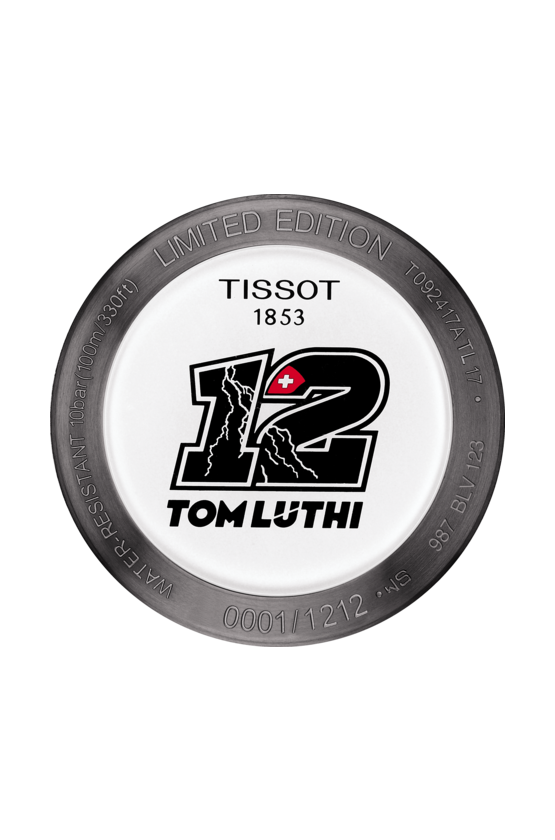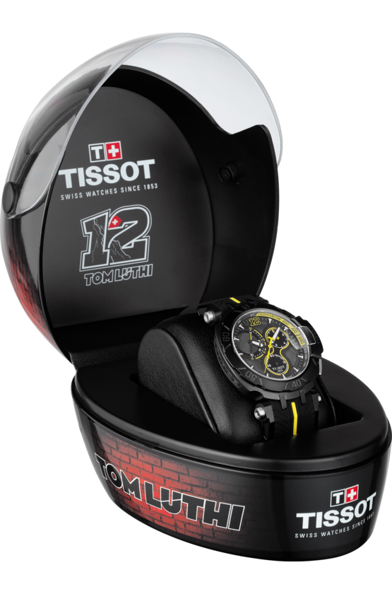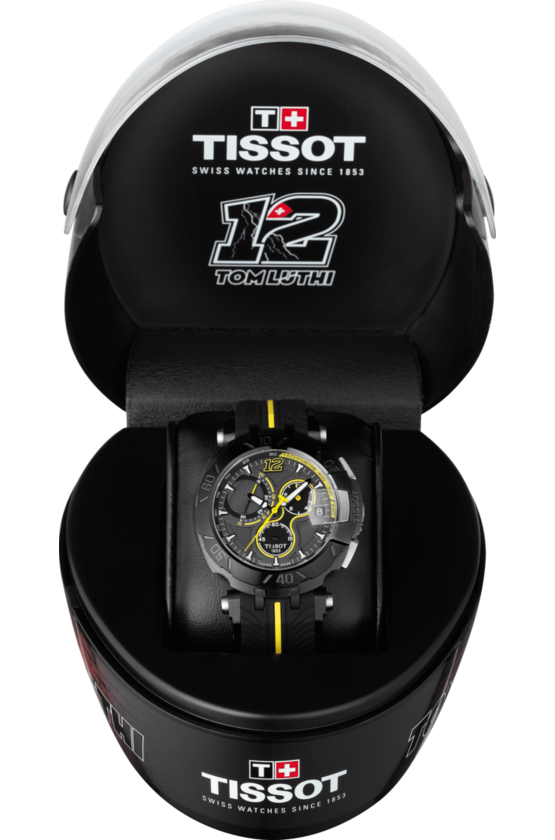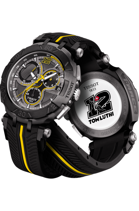 Мужские швейцарские часы Limited Edition из коллекции T-Race посвящены мотогонщику Томасу Люти, декор символизирует дух мотогонок MotoGP.