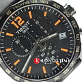 Чёрный фактурный циферблат никогда не утратит актуальности, брендовый аксессуар стильно смотрится на запястье и позволит вам всегда ощущать себя на высоте. В качестве материала для изготовления корпуса была выбрана нержавеющая сталь 316L с PDV покрытием. Кварцевый механизм ETA G10.211 с высокой точностью хода. Стекло из сапфира. Водонепроницаемость до 10 бар. Люминесцентная подсветкаЛюминесцентное покрытиеПозволяет считывать показания времени в темноте. Производители наносят на стрелки, часовые индексы, безель или поверхность циферблата светонакопительный состав, дающий холодное свечение.. Кожаный ремешок с оранжевой прострочкой. ХронографХронографФункция позволяет измерять отрезки времени с особой точностью: часы, минуты, секунды. Верным признаком хронографа является наличие на циферблате 3 дополнительных окошек-счётчиков., секундомер, индикация текущего числа, тахиметрТахиметрРазмеченная шкала, располагается на ободке или безеле часов. Тахиметр позволяет рассчитать скорость на определённом участке пути, расстояние измеряется в километрах или милях.. Габариты: 42 x 42 x 10,7 мм.