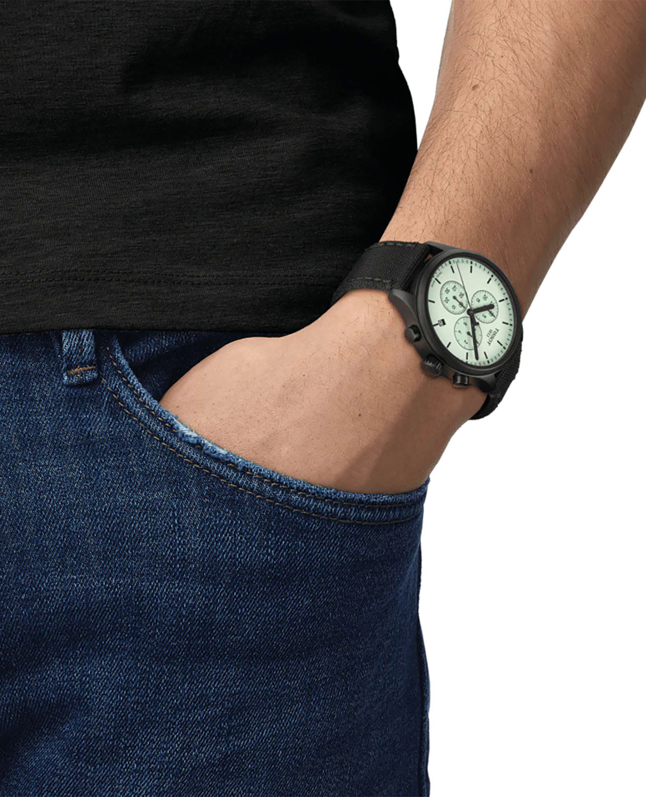 Аксессуар станет яркой деталью образа благодаря мятному оттенку циферблата, выполненному в лаконичном стиле. Контрастные метки, стрелки и ободки счётчиков обеспечивают идеальную читаемость циферблата. Швейцарский кварцевый механизм ETA G10.212. Комфортный тканевый ремешок NATO. Корпус из нержавеющей стали 316L с защитным PVD-покрытиемPVDУльтратонкое покрытие наносится в технике вакуумного напыления, сочетает в себе нитрид титана особой прочности со слоем золота или оксида хрома. Несёт в себе декоративную или защитную функцию.. Сапфировое стекло. Водостойкость 10 бар. Яркая люминесцентная подсветкаЛюминесцентное покрытиеПозволяет считывать показания времени в темноте. Производители наносят на стрелки, часовые индексы, безель или поверхность циферблата светонакопительный состав, дающий холодное свечение.. Отображение даты, секундомер. Габариты: 45 x 45 x 11 мм.