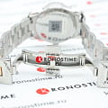 Компактный перламутровый циферблат имеет оригинальные стрелки в виде лепестков, веяние ретро-стиля добавляют тонкие римские цифры. Отдельную привлекательность и некую изюминку добавляет PVD-покрытиеPVDУльтратонкое покрытие наносится в технике вакуумного напыления, сочетает в себе нитрид титана особой прочности со слоем золота или оксида хрома. Несёт в себе декоративную или защитную функцию. в цвете розового золота. Швейцарский кварцевый механизм ETA G15.211 с 3 камнями. Стекло из сапфира отличается устойчивостью к возникновению царапин.. Функция EOLEOLПредставляет собой систему, уведомляющую владельца часов о необходимости замены элемента питания. За 2 недели до полного разряда батарейки секундная стрелка перестаёт ходить чётко и начинает перепрыгивать на 3-4 деления.. Габариты: 30 x 30 x 8,7 мм.