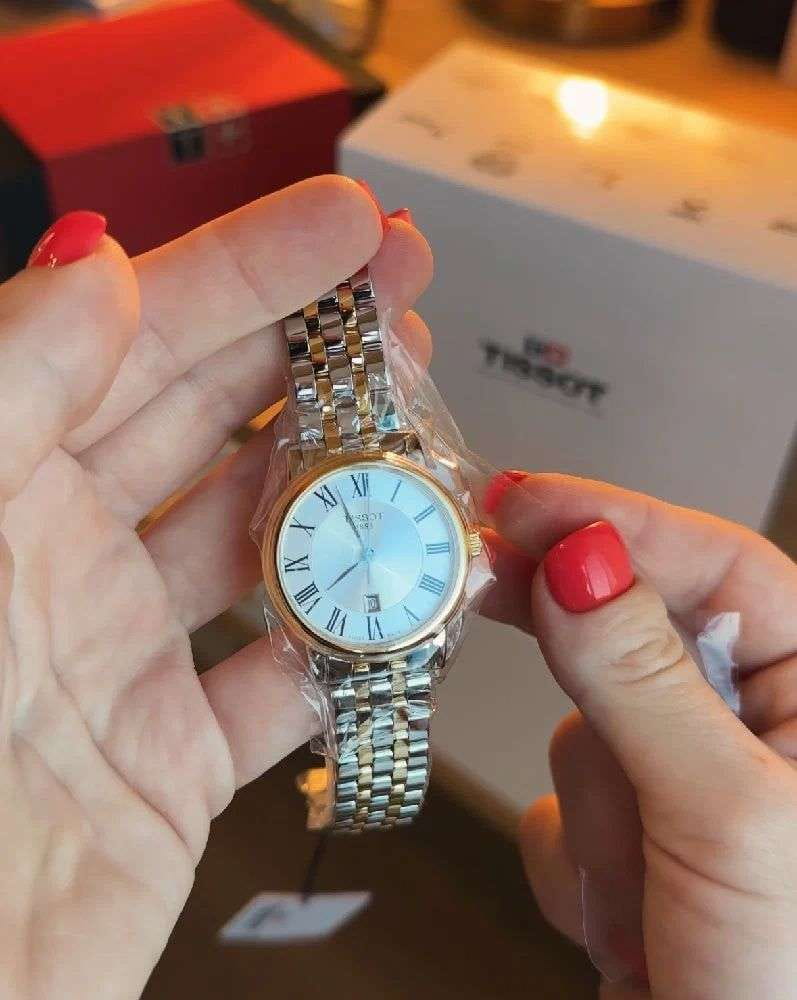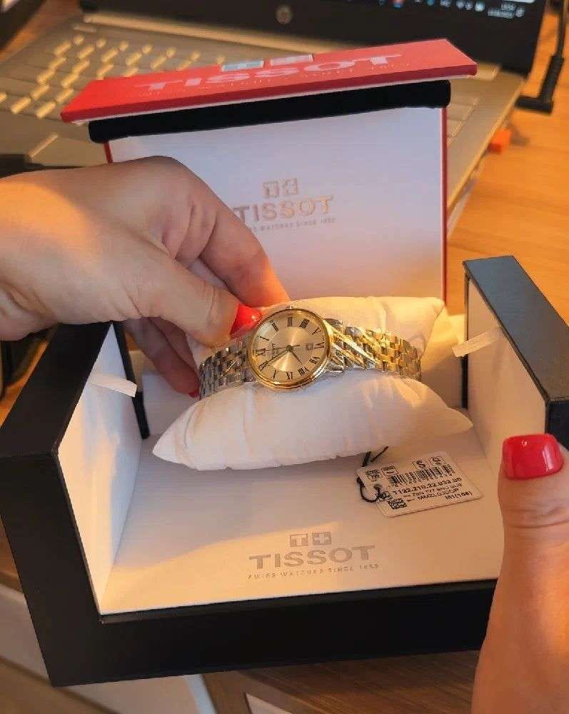 Вторые часы Tissot на этот раз женские, и они просто великолепны! Лёгкие, но не «невесомые», элегантные и с изысканной отделкой из жёлтой позолоты смотрятся дорого, но без излишней вычурности. Цифры чёткие и легко читаемые, даже при слабом свете. Сапфировое стекло, без царапин и с идеальной прозрачностью, а заявленной водонепроницаемости вполне хватает для повседневной носки.  Идеальный баланс утончённости, функциональности и качества.