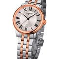 Модель высокого швейцарского качества отличается дизайном в стиле минимализм, лаконичное оформление придётся по вкусу каждому. Отличительной чертой стали удлинённые стрелки и оригинальный циферблат. Стальной браслет имеет PVD-покрытиеPVDУльтратонкое покрытие наносится в технике вакуумного напыления, сочетает в себе нитрид титана особой прочности со слоем золота или оксида хрома. Несёт в себе декоративную или защитную функцию. в цвете розового золота. Кварцевый механизм ETA F03.115. Сапфировое стекло. Водостойкость при давлении 5 бар. Календарь, функция EOLEOLПредставляет собой систему, уведомляющую владельца часов о необходимости замены элемента питания. За 2 недели до полного разряда батарейки секундная стрелка перестаёт ходить чётко и начинает перепрыгивать на 3-4 деления.. . Габариты: 30 x 30 x 6,7 мм.