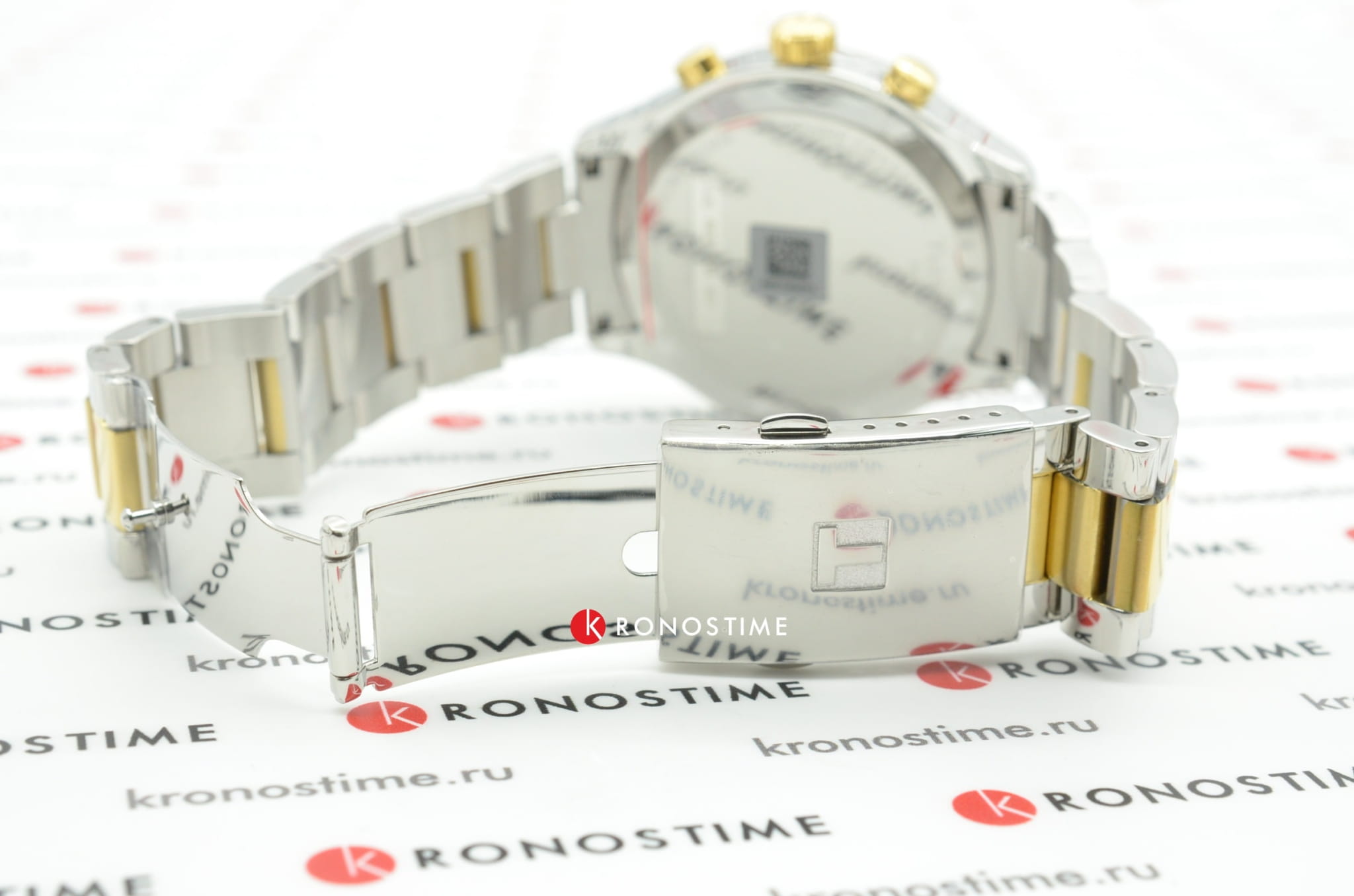 Мужской хронографХронографФункция позволяет измерять отрезки времени с особой точностью: часы, минуты, секунды. Верным признаком хронографа является наличие на циферблате 3 дополнительных окошек-счётчиков. не только позволяет измерять временные промежутки с особой точностью, но и выполняет роль элегантного аксессуара. Ярко-синий циферблат сразу бросается в глаза, три дополнительных счётчика привносят в общий облик модели спортивный стиль. Наручные часы изготовлены из нержавеющей стали с PVD-покрытиемPVDУльтратонкое покрытие наносится в технике вакуумного напыления, сочетает в себе нитрид титана особой прочности со слоем золота или оксида хрома. Несёт в себе декоративную или защитную функцию., тяжесть материала приятно ощущается на запястье и не доставляет неудобств. Кварцевый механизм ETA G10.212. Люминесцентная подсветка. Высокие показатели водозащиты. Габариты: 45 x 45 x 11 мм. Производство и сборка: Швейцария.