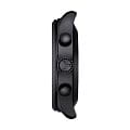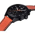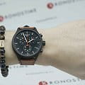 На чёрном циферблате симметрично расположены функциональные окошки. Спортивный хронографХронографФункция позволяет измерять отрезки времени с особой точностью: часы, минуты, секунды. Верным признаком хронографа является наличие на циферблате 3 дополнительных окошек-счётчиков. ограниченного выпуска точно необходим для придания образу эксклюзивности. Оригинально смотрится кожаный ремешок с узнаваемой прострочкой, сделанный из материала для изготовления баскетбольных мячей. Задняя крышка украшена гравировкой-логотипом NBA. Швейцарский кварцевый механизм ETA G10.212. Сапфировое стекло. Корпус из стали 316L с чёрным PVD-покрытиемPVDУльтратонкое покрытие наносится в технике вакуумного напыления, сочетает в себе нитрид титана особой прочности со слоем золота или оксида хрома. Несёт в себе декоративную или защитную функцию.. Яркая люминесцентная подсветкаЛюминесцентное покрытиеПозволяет считывать показания времени в темноте. Производители наносят на стрелки, часовые индексы, безель или поверхность циферблата светонакопительный состав, дающий холодное свечение.. Высокоточный секундомер, отображение числа. Габариты: 45 x 45 x 10,92 мм.