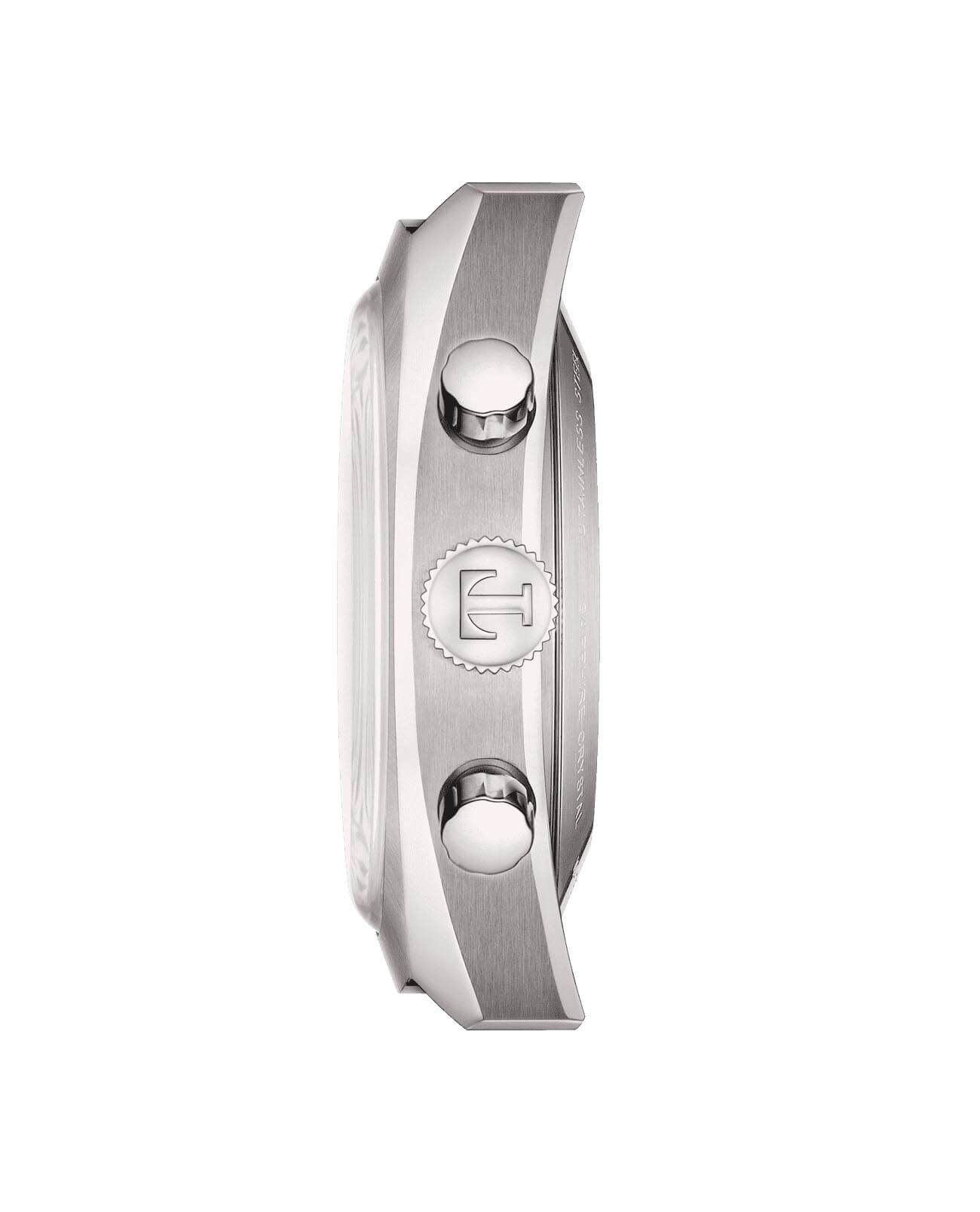 Наручные часы с оранжевыми деталями возрождают аксессуар Tissot Navigator 1973 года, спортивный хронографХронографФункция позволяет измерять отрезки времени с особой точностью: часы, минуты, секунды. Верным признаком хронографа является наличие на циферблате 3 дополнительных окошек-счётчиков. символизирует историческое партнёрство швейцарского бренда и автогоночной команды Kessel Classics. Модель выполнена в винтажном стиле, практически весь корпус матовый, исключение составляет передняя скошенная полированная поверхность. Часы оснащаются престижным автоматическим механизмом Valjoux 7753 с запасом хода 48 часов и отделкой ротора женевские волны. Прозрачная задняя крышка. Чёрный ремешок с перфорацией из натуральной кожи. . Стекло из сапфира с антибликовой поверхностью. Секундомер, отображение числа. Габариты: 46,6 x 43 x 14,8 мм.