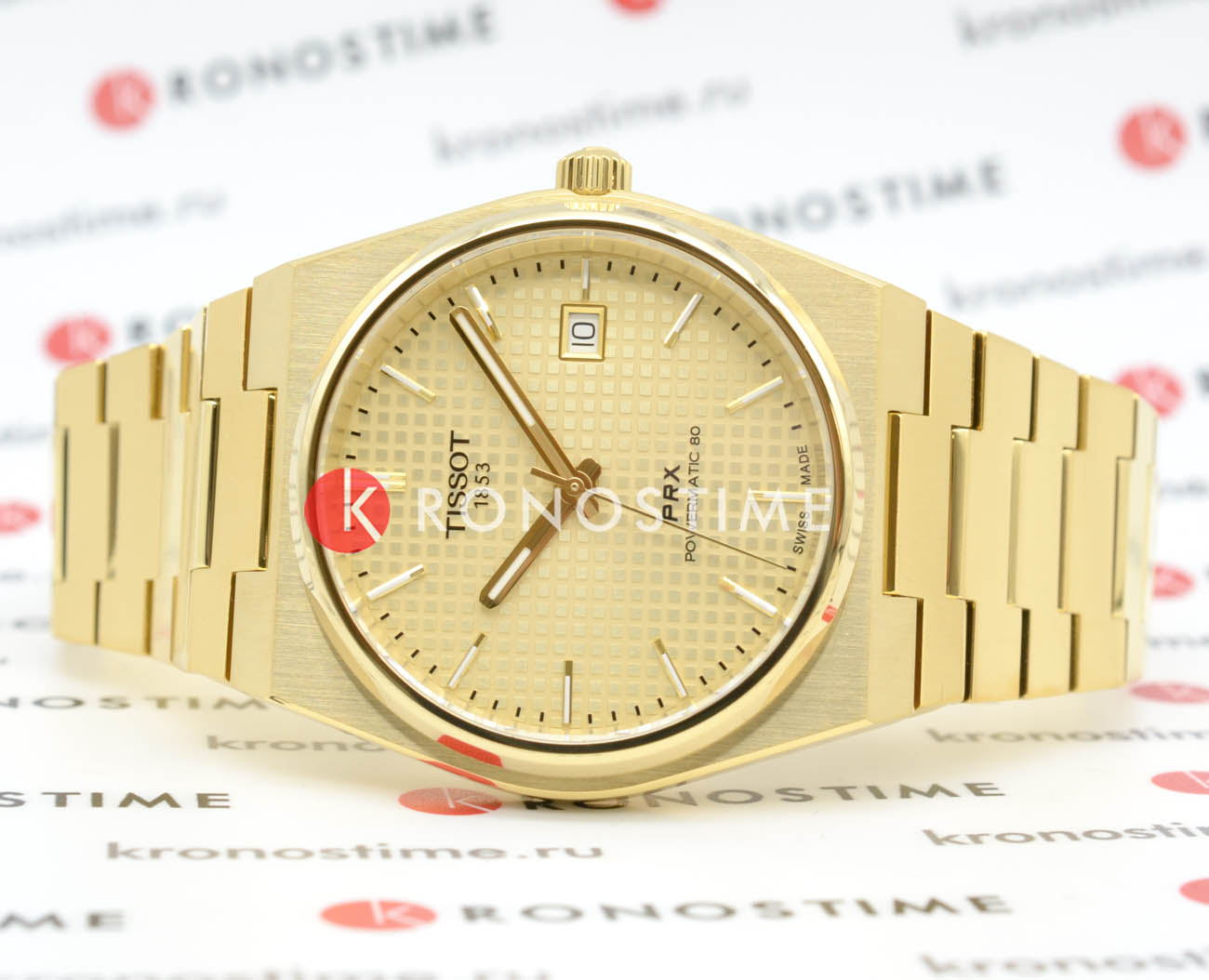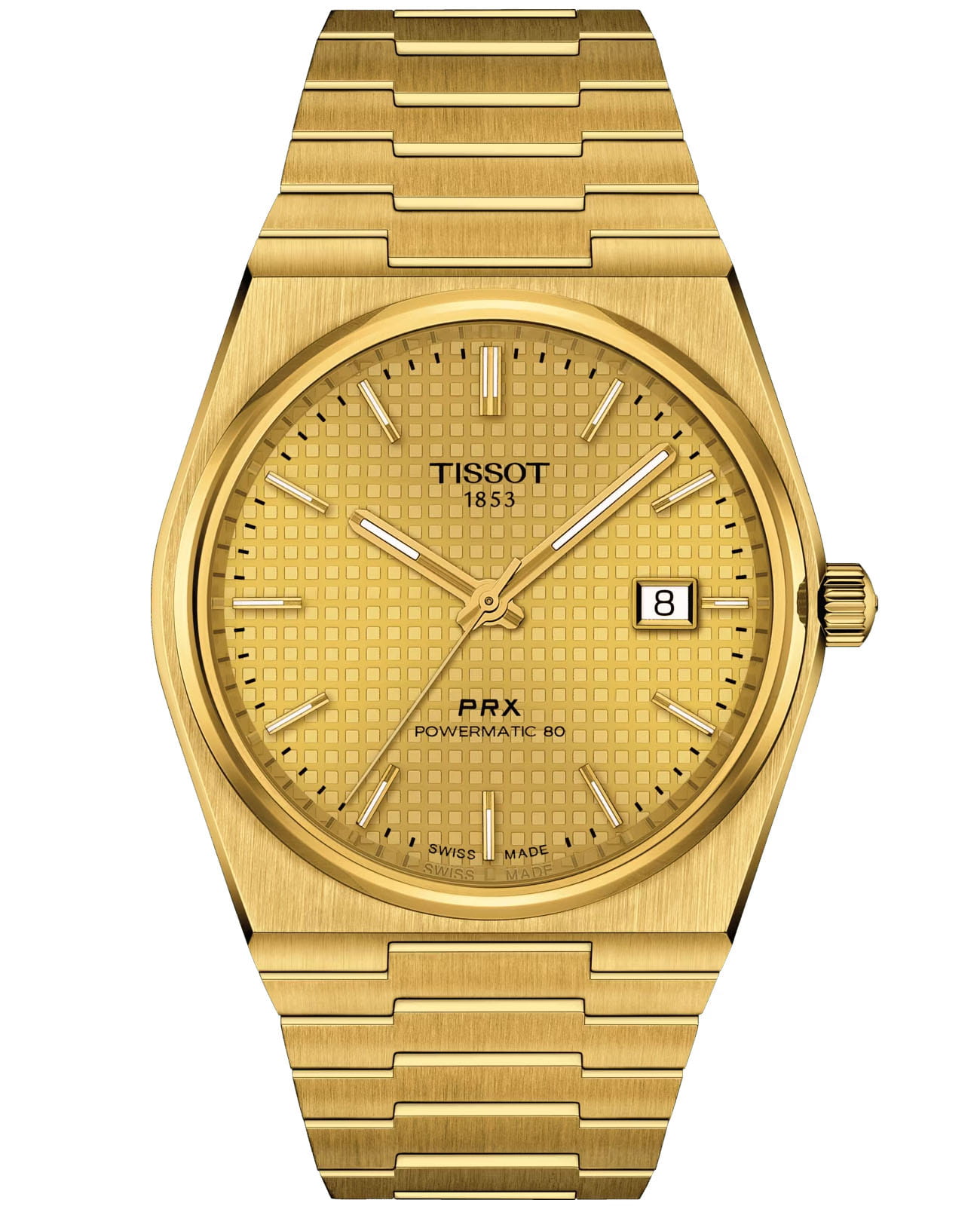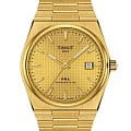 Tissot PRX Powermatic 80 (модель T137.407.33.021.00) – это элегантные часы, сочетающие современный дизайн с высокими технологиями. Корпус диаметром 40 мм выполнен из нержавеющей стали 316L с жёлтым PVD-покрытиемPVDУльтратонкое покрытие наносится в технике вакуумного напыления, сочетает в себе нитрид титана особой прочности со слоем золота или оксида хрома. Несёт в себе декоративную или защитную функцию., придающим часам роскошный вид. Шампанского оттенка циферблат украшен узором "шашечки" и защищён сапфировым стекломСапфировое стеклоПрочный и надёжный материал из кристалла сапфира синтетического происхождения, характеризующийся особой твёрдостью и устойчивостью к царапинам и повреждениям. с антибликовым покрытиемАнтибликовое покрытиеСлой оксида металла в 0,13-0,3 микрон, благодаря которому стекло часов не бликует и не отражает свет. Антибликовое покрытие уменьшает отражение света в 10 раз, обеспечивая отличную читаемость показателей циферблата., устойчивым к царапинам. Часы оснащены автоматическим механизмом Powermatic 80Powermatic 80Эксклюзивный калибр от швейцарской компании ETA с увеличенным запасом хода до 80 часов за счёт удлинённой заводной пружины. Характеризуется улучшенной системой спуска со сниженным трением. с запасом хода до 80 часов и антимагнитной спиралью баланса из сплава Nivachron™Nivachron™Специально разработанный инновационный сплав Nivachron™ повышает устойчивость часов к воздействию магнитных полей., обеспечивающей высокую точность хода. Браслет из нержавеющей стали с жёлтым PVD-покрытием оснащён застёжкой 'бабочка'Застёжка "бабочка"Такой вид застёжки дополняется предохранителями, помогающими избежать случайного раскрытия браслета. Обладают изящным исполнением. , обеспечивающей надёжную фиксацию и комфорт при ношении. Водонепроницаемость до 10 бар (100 метров) позволяет использовать часы при плавании и других водных активностях.