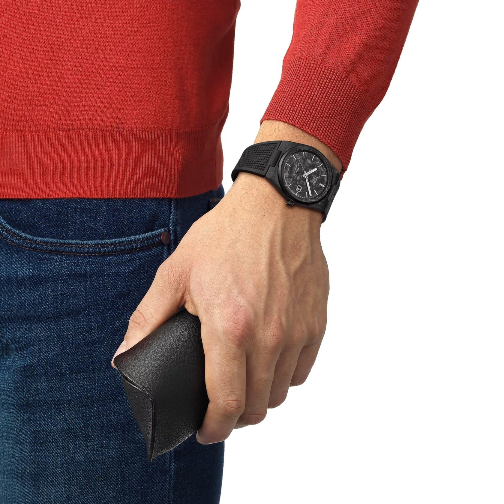 Швейцарские мужские механические часы Tissot PRX Powermatic 80 Carbon T137.907.97.201.00
