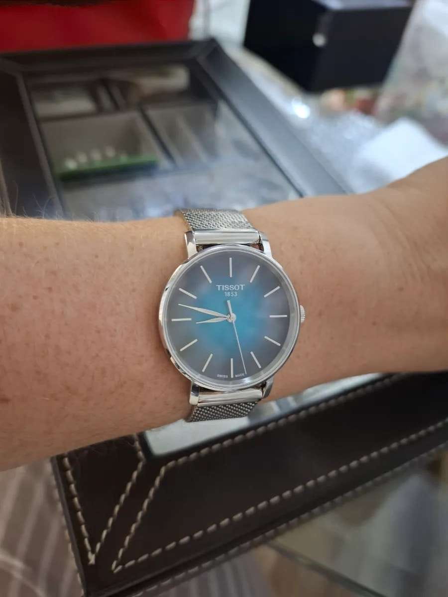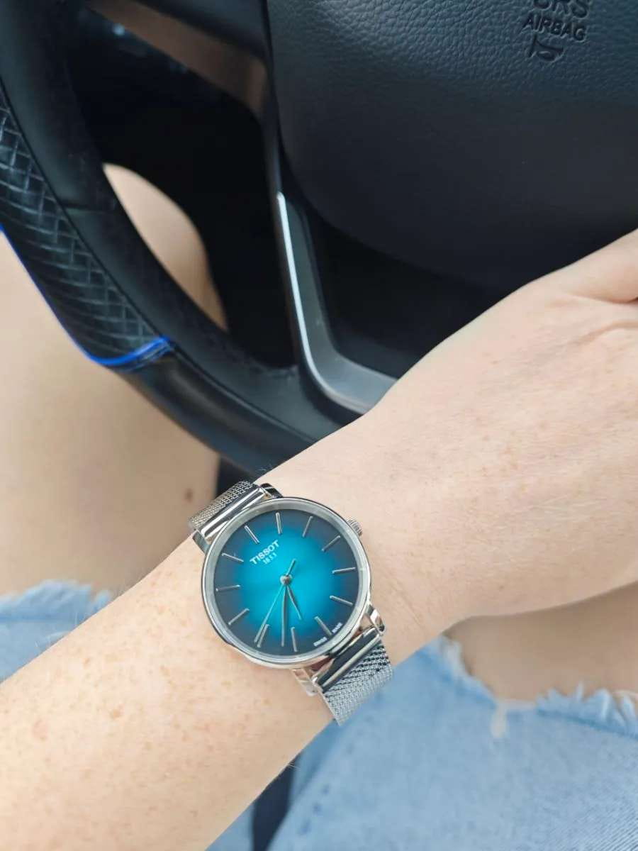 Tissot Everytime Lady T143.210.11.091.00 – элегантные женские часы, сочетающие современный дизайн и надёжность. Корпус диаметром 34 мм и толщиной 6,92 мм выполнен из нержавеющей стали 316L, обеспечивая долговечность и устойчивость к коррозии. Градиентный зелёно-чёрный циферблат придаёт модели уникальный и стильный вид, а его поверхность защищена сапфировым стекломСапфировое стеклоПрочный и надёжный материал из кристалла сапфира синтетического происхождения, характеризующийся особой твёрдостью и устойчивостью к царапинам и повреждениям., устойчивым к царапинам.