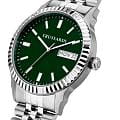 Итальянские мужские часы Trussardi T-Bent R2453141010 - это стильный мужской аксессуар, который сочетает элегантный дизайн и практичность. Корпус выполнен из нержавеющей стали, что обеспечивает долговечность и утончённый внешний вид. Надежное минеральное стеклоМинеральное стеклоМинеральное стекло представляет собой искусственно выращенный минерал кварца. Такое стекло отличается особой устойчивостью к повреждениям и царапинам. Уступает по некоторым качествам сапфировому стеклу. защищает циферблат от царапин и обеспечивает долговечность. Модель оснащена кварцевым механизмом, обеспечивающим высокую точность хода. Браслет из нержавеющей стали с раскладной застёжкойРаскладная застёжкаТакой тип застёжки используется только на браслетах из металла. Она никогда не раскрывается полностью, происходит разделение на 2 и более частей. Раскладывающая застёжка снизит вероятность потери часов к минимуму. обеспечивает комфортное ношение. Водозащита 50 метров позволит защитить корпус от случайных брызг или капель дождя. Окошки даты и дня недели находятся в положении 3 часа. Стрелки и метки оснащены люминесцентным покрытиемЛюминесцентное покрытиеПозволяет считывать показания времени в темноте. Производители наносят на стрелки, часовые индексы, безель или поверхность циферблата светонакопительный состав, дающий холодное свечение., обеспечивающим отличную видимость даже при слабом освещении. Эта модель – отличный выбор для тех, кто ищет сочетание стиля, качества и функциональности. Часы станут не только полезным аксессуаром, но и выразительным элементом вашего имиджа.