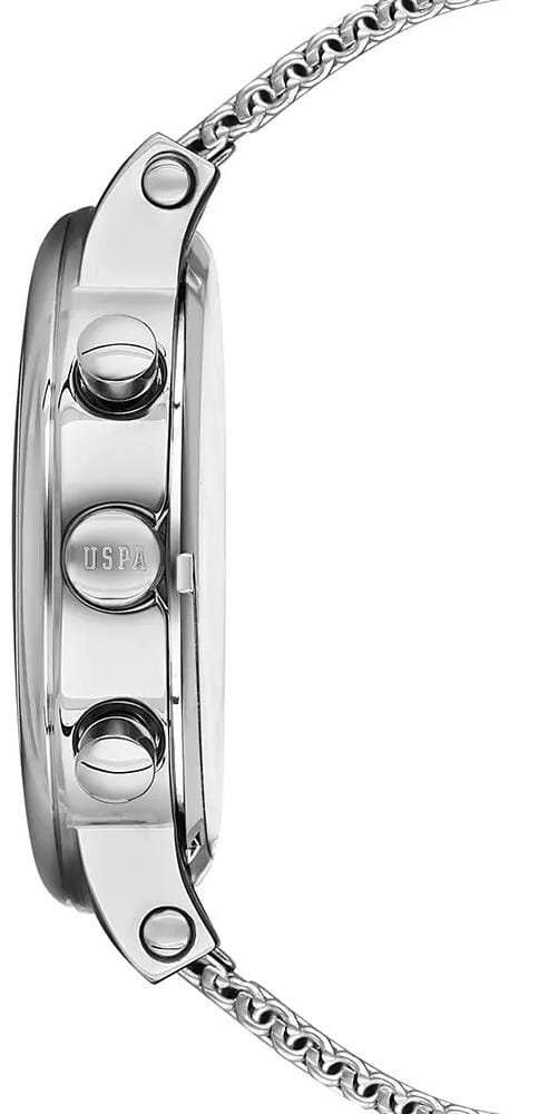 Мужские часы часы U.S. Polo Assn. Crossing USPA1008-01, кварцевый механизм с высокой точностью. Минеральное стеклоМинеральное стеклоМинеральное стекло представляет собой искусственно выращенный минерал кварца. Такое стекло отличается особой устойчивостью к повреждениям и царапинам. Уступает по некоторым качествам сапфировому стеклу. устойчивое к появлению царапин, обладающее высокой прозрачностью. Центральные часовая, минутная и секундная стрелки. Индикация даты и дня недели. 12/24х часовой формат времени. Корпус и браслет изготовлены из нержавеющей стали. На циферблате три дополнительных индикатора. Стрелки и метки с люминесцентным покрытиемЛюминесцентное покрытиеПозволяет считывать показания времени в темноте. Производители наносят на стрелки, часовые индексы, безель или поверхность циферблата светонакопительный состав, дающий холодное свечение.. Класс водозащиты: 50 метров, позволит защитить корпус от случайных брызг или капель дождя. Стальной браслет на раскладном замкеРаскладной замокДанный вариант застежки используется только на часах с металлическим браслетом. Отличительная особенность такого крепления в том, что длина браслета становится универсальной и вы можете самостоятельно отрегулировать нужный вам размер – застежка просто двигается по браслету часов..