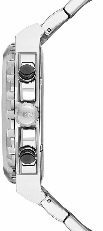 Мужские часы U.S. Polo Assn. Crossing USPA1030-07, кварцевый механизм с высокой точностью. Минеральное стеклоМинеральное стеклоМинеральное стекло представляет собой искусственно выращенный минерал кварца. Такое стекло отличается особой устойчивостью к повреждениям и царапинам. Уступает по некоторым качествам сапфировому стеклу. устойчивое к появлению царапин, обладающее высокой прозрачностью. Центральные часовая, минутная и секундная стрелки. Индикация даты и дня недели. 12/24х часовой формат времени. Корпус и браслет изготовлены из нержавеющей стали. На циферблате три дополнительных индикатора. Стрелки и метки с люминесцентным покрытиемЛюминесцентное покрытиеПозволяет считывать показания времени в темноте. Производители наносят на стрелки, часовые индексы, безель или поверхность циферблата светонакопительный состав, дающий холодное свечение.. Класс водозащиты: 50 метров, позволит защитить корпус от случайных брызг или капель дождя. Стальной браслет на раскладной застёжкеРаскладная застёжкаТакой тип застёжки используется только на браслетах из металла. Она никогда не раскрывается полностью, происходит разделение на 2 и более частей. Раскладывающая застёжка снизит вероятность потери часов к минимуму..