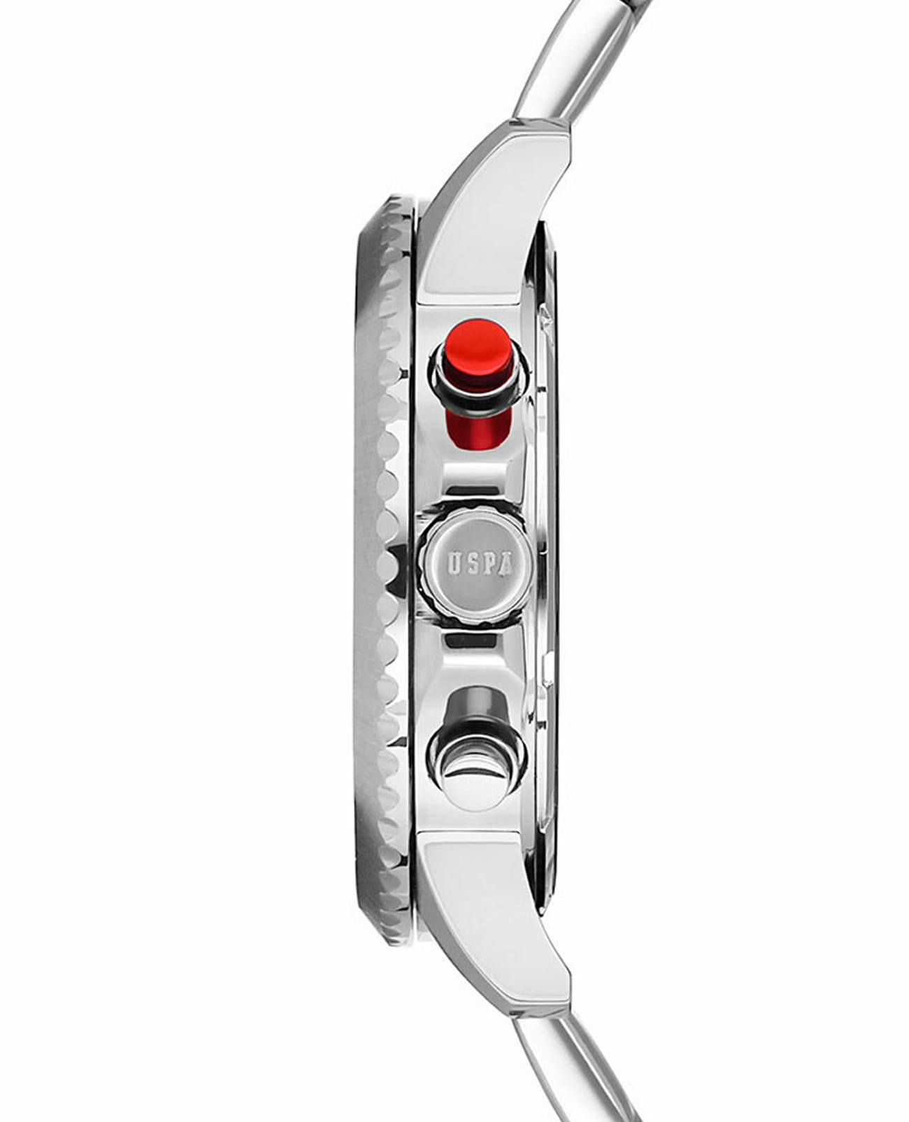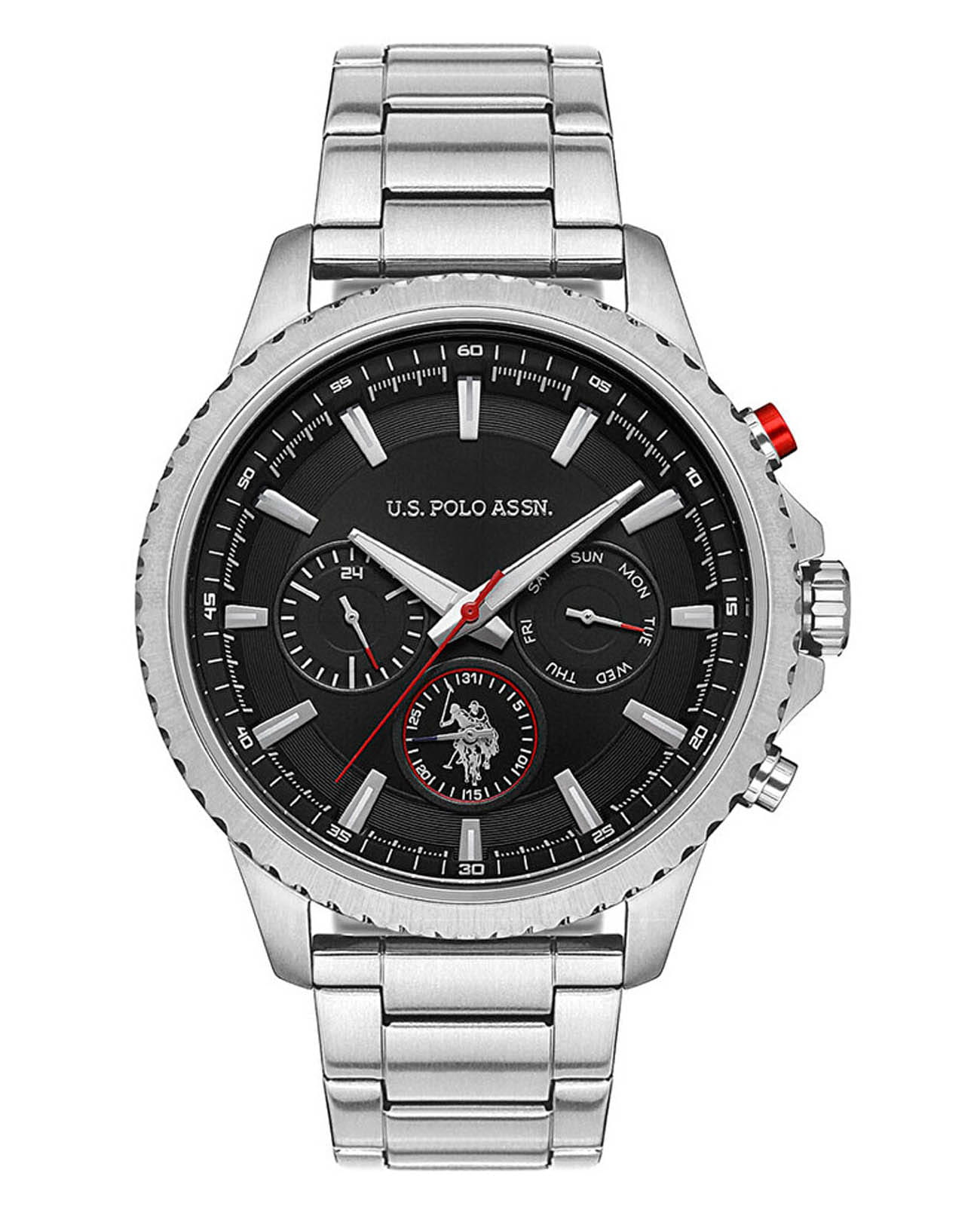 Мужские часы U.S. Polo Assn. Crossing USPA1034-01, кварцевый механизм с высокой точностью. Минеральное стеклоМинеральное стеклоМинеральное стекло представляет собой искусственно выращенный минерал кварца. Такое стекло отличается особой устойчивостью к повреждениям и царапинам. Уступает по некоторым качествам сапфировому стеклу. устойчивое к появлению царапин, обладающее высокой прозрачностью. Центральные часовая, минутная и секундная стрелки. Индикация даты и дня недели. 12/24х часовой формат времени. Корпус и браслет изготовлены из нержавеющей стали. На циферблате три дополнительных индикатора. Стрелки и метки с люминесцентным покрытиемЛюминесцентное покрытиеПозволяет считывать показания времени в темноте. Производители наносят на стрелки, часовые индексы, безель или поверхность циферблата светонакопительный состав, дающий холодное свечение.. Класс водозащиты: 50 метров, позволит защитить корпус от случайных брызг или капель дождя. Стальной браслет на застёжке «бабочка» с кнопкамиЗастёжка "бабочка"Такой вид застёжки дополняется предохранителями, помогающими избежать случайного раскрытия браслета. Обладают изящным исполнением. .