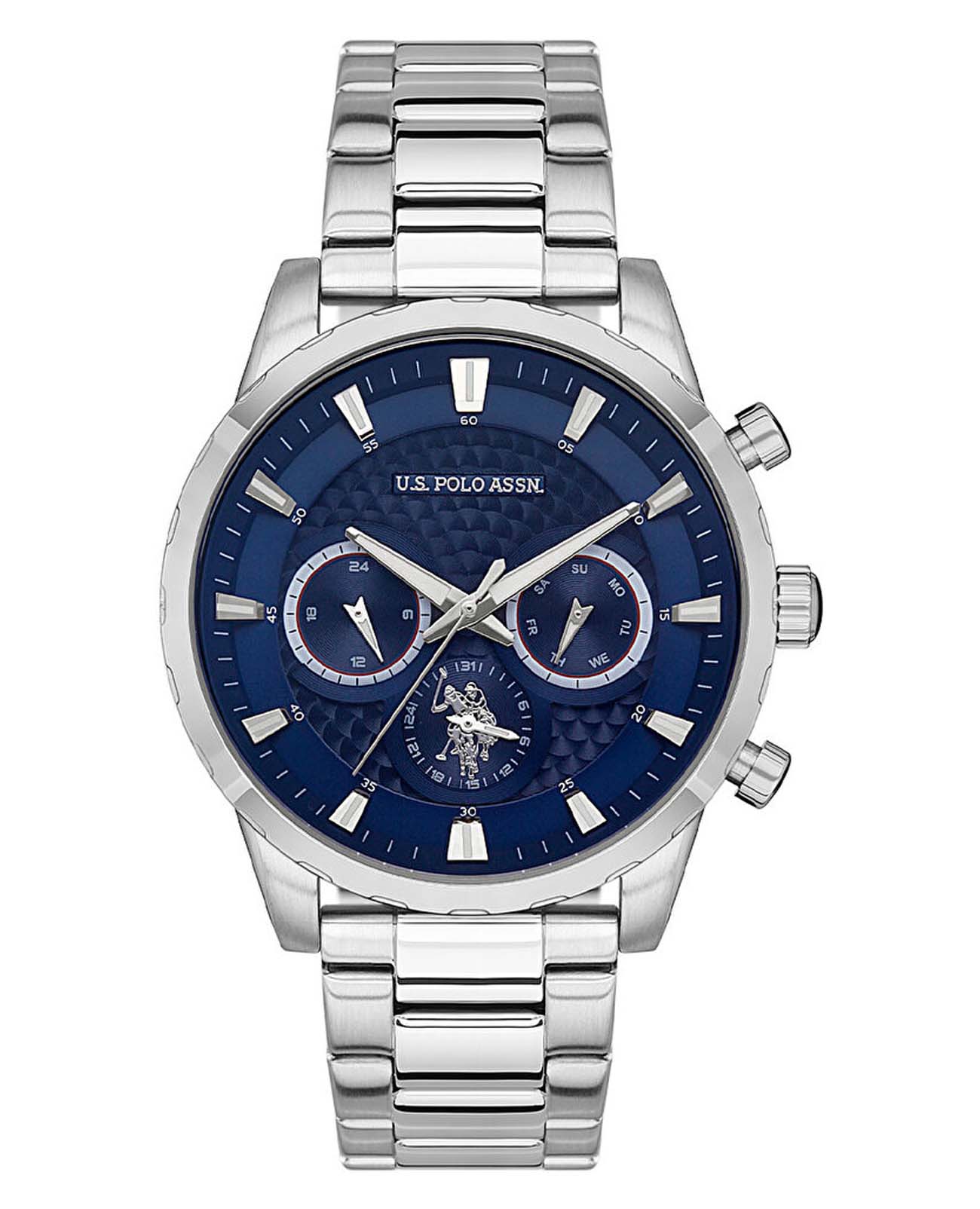 Мужские часы U.S. Polo Assn Crossing USPA1055-02, кварцевый механизм с высокой точностью. Минеральное стеклоМинеральное стеклоМинеральное стекло представляет собой искусственно выращенный минерал кварца. Такое стекло отличается особой устойчивостью к повреждениям и царапинам. Уступает по некоторым качествам сапфировому стеклу. устойчивое к появлению царапин, обладающее высокой прозрачностью. Корпус изготовлен из нержавеющей стали. Центральные часовая, минутная и секундная стрелки. Индикация даты и дня недели. 12/24х часовой формат времени. Стрелки и метки с люминесцентным покрытиемЛюминесцентное покрытиеПозволяет считывать показания времени в темноте. Производители наносят на стрелки, часовые индексы, безель или поверхность циферблата светонакопительный состав, дающий холодное свечение.. Класс водозащиты: 50 метров, позволит защитить корпус от случайных брызг или капель дождя. Стальной браслет на раскладной застёжкеРаскладная застёжкаТакой тип застёжки используется только на браслетах из металла. Она никогда не раскрывается полностью, происходит разделение на 2 и более частей. Раскладывающая застёжка снизит вероятность потери часов к минимуму..