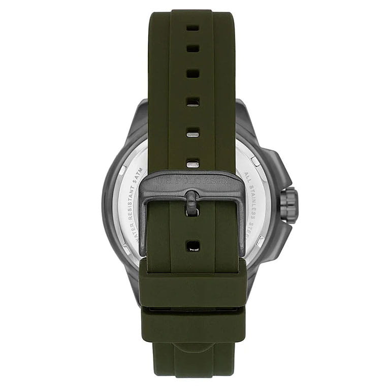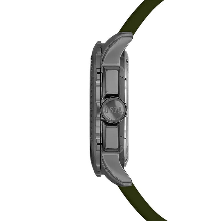 Мужские изысканные американские часы U.S. Polo Assn. Crossing USPA1066-04, кварцевый механизм с высокой точностью. Минеральное стеклоМинеральное стеклоМинеральное стекло представляет собой искусственно выращенный минерал кварца. Такое стекло отличается особой устойчивостью к повреждениям и царапинам. Уступает по некоторым качествам сапфировому стеклу. устойчивое к появлению царапин, обладающее высокой прозрачностью. Корпус изготовлен из нержавеющей стали с PVDPVDУльтратонкое покрытие наносится в технике вакуумного напыления, сочетает в себе нитрид титана особой прочности со слоем золота или оксида хрома. Несёт в себе декоративную или защитную функцию. покрытием с поворотным безелемБезельВнешний ободок, закрепляющий стекло. В спортивных часах так называется поворотное кольцо с делениями на циферблате, выполняет роль таймера – замеряет отрезки времени на шкале. Неподвижный безель – элемент декора. Однонаправленно вращающийся безель на дайверских часах позволяет фиксировать моменты погружения и выныривания на поверхность.. На стильном зеленом циферблате три дополнительных индикатора. Центральные часовая, минутная и секундная стрелки. Индикация даты и дня недели. 12/24х часовой формат времени. Класс водозащиты: 50 метров, позволит защитить корпус от случайных брызг или капель дождя. Силиконовый ремешок зеленого цвета со стандартной застежкой безупречно дополняет корпус. Стрелки оснащены люминесцентным покрытиемЛюминесцентное покрытиеПозволяет считывать показания времени в темноте. Производители наносят на стрелки, часовые индексы, безель или поверхность циферблата светонакопительный состав, дающий холодное свечение., обеспечивающим хорошую читаемость в темноте. Модель подчёркивает индивидуальность владельца и идеально подходит как для повседневного, так и для делового образа.
