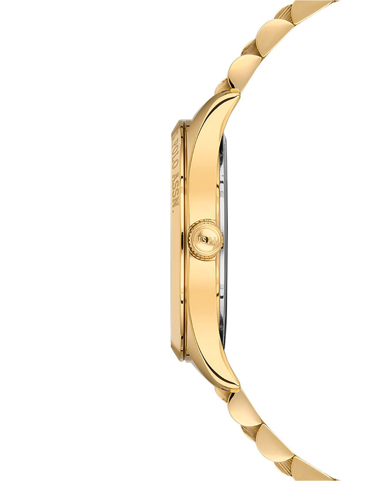 Женские часы U.S. Polo Assn. Fundamental USPA2041-05, кварцевый механизм с высокой точностью. Минеральное стеклоМинеральное стеклоМинеральное стекло представляет собой искусственно выращенный минерал кварца. Такое стекло отличается особой устойчивостью к повреждениям и царапинам. Уступает по некоторым качествам сапфировому стеклу. устойчивое к появлению царапин, обладающее высокой прозрачностью. Корпус и браслет изготовлены из нержавеющей стали с IP-покрытиемIP-покрытиеМетод ионного напыления. Демонстрирует повышенную устойчивость к истиранию, окислению и химическим веществам. Под воздействием высокого давления и температуры около 1500°C молекулы металла надёжно соединяются с частицами корпуса часов.. Стрелки и метки с люминесцентным покрытиемЛюминесцентное покрытиеПозволяет считывать показания времени в темноте. Производители наносят на стрелки, часовые индексы, безель или поверхность циферблата светонакопительный состав, дающий холодное свечение.. Класс водозащиты: 50 метров, позволит защитить корпус от случайных брызг или капель дождя. Стальной браслет на застёжке «бабочка» с кнопкамиЗастёжка "бабочка"Такой вид застёжки дополняется предохранителями, помогающими избежать случайного раскрытия браслета. Обладают изящным исполнением. .