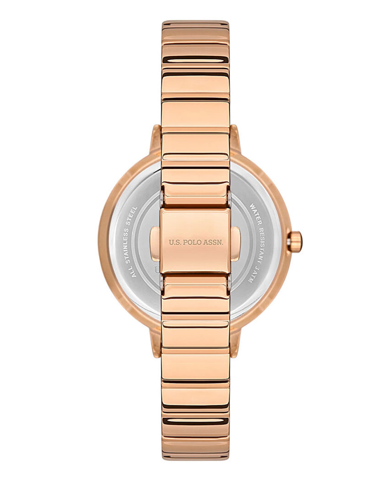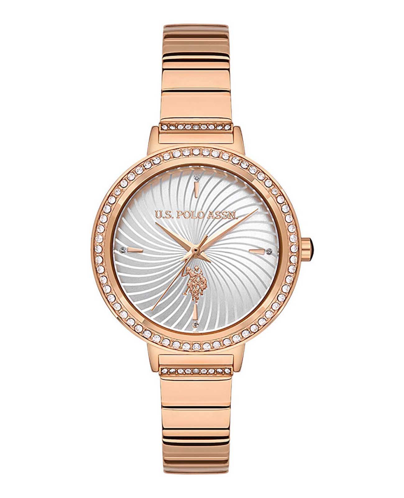 Женские часы U.S. Polo Assn Stile USPA2055-01, кварцевый механизм с высокой точностью. Минеральное стеклоМинеральное стеклоМинеральное стекло представляет собой искусственно выращенный минерал кварца. Такое стекло отличается особой устойчивостью к повреждениям и царапинам. Уступает по некоторым качествам сапфировому стеклу. устойчивое к появлению царапин, обладающее высокой прозрачностью. Корпус изготовлен из нержавеющей стали с IP-покрытиемIP-покрытиеМетод ионного напыления. Демонстрирует повышенную устойчивость к истиранию, окислению и химическим веществам. Под воздействием высокого давления и температуры около 1500°C молекулы металла надёжно соединяются с частицами корпуса часов.. БезельБезельВнешний ободок, закрепляющий стекло. В спортивных часах так называется поворотное кольцо с делениями на циферблате, выполняет роль таймера – замеряет отрезки времени на шкале. Неподвижный безель – элемент декора. Однонаправленно вращающийся безель на дайверских часах позволяет фиксировать моменты погружения и выныривания на поверхность. и циферблат украшены кристаллами. Класс водозащиты: 30 метров, позволит защитить корпус от случайных брызг или капель дождя. Стальной браслет с IP-покрытиемIP-покрытиеМетод ионного напыления. Демонстрирует повышенную устойчивость к истиранию, окислению и химическим веществам. Под воздействием высокого давления и температуры около 1500°C молекулы металла надёжно соединяются с частицами корпуса часов. на раскладной застёжкеРаскладная застёжкаТакой тип застёжки используется только на браслетах из металла. Она никогда не раскрывается полностью, происходит разделение на 2 и более частей. Раскладывающая застёжка снизит вероятность потери часов к минимуму..
