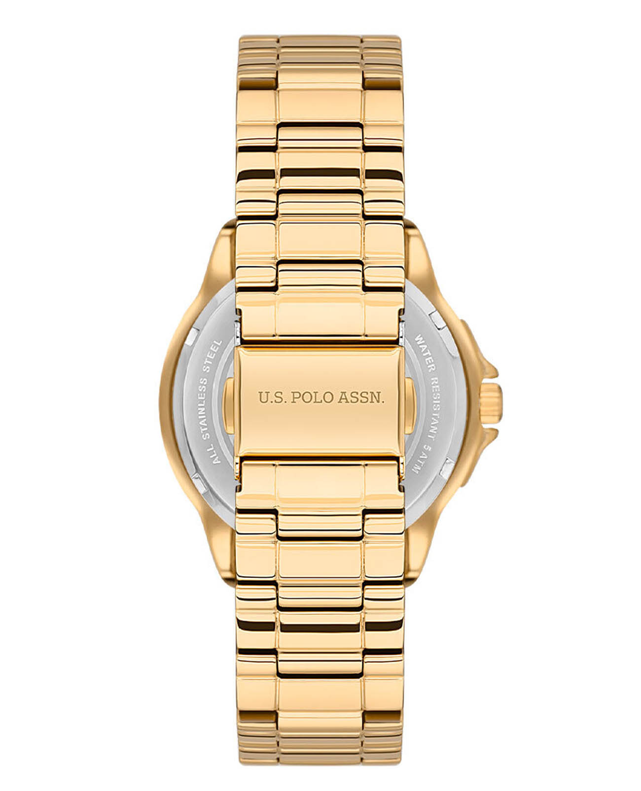 Женские часы U.S. Polo Assn Stile USPA2065-03, кварцевый механизм с высокой точностью. Минеральное стеклоМинеральное стеклоМинеральное стекло представляет собой искусственно выращенный минерал кварца. Такое стекло отличается особой устойчивостью к повреждениям и царапинам. Уступает по некоторым качествам сапфировому стеклу. устойчивое к появлению царапин, обладающее высокой прозрачностью. Корпус изготовлен из нержавеющей стали с IP-покрытиемIP-покрытиеМетод ионного напыления. Демонстрирует повышенную устойчивость к истиранию, окислению и химическим веществам. Под воздействием высокого давления и температуры около 1500°C молекулы металла надёжно соединяются с частицами корпуса часов.. Стрелки с люминесцентным покрытиемЛюминесцентное покрытиеПозволяет считывать показания времени в темноте. Производители наносят на стрелки, часовые индексы, безель или поверхность циферблата светонакопительный состав, дающий холодное свечение.. 12/24х часовой формат времени. Класс водозащиты: 50 метров, позволит защитить корпус от случайных брызг или капель дождя. Стальной браслет с IP-покрытиемIP-покрытиеМетод ионного напыления. Демонстрирует повышенную устойчивость к истиранию, окислению и химическим веществам. Под воздействием высокого давления и температуры около 1500°C молекулы металла надёжно соединяются с частицами корпуса часов. на раскладной застёжкеРаскладная застёжкаТакой тип застёжки используется только на браслетах из металла. Она никогда не раскрывается полностью, происходит разделение на 2 и более частей. Раскладывающая застёжка снизит вероятность потери часов к минимуму..