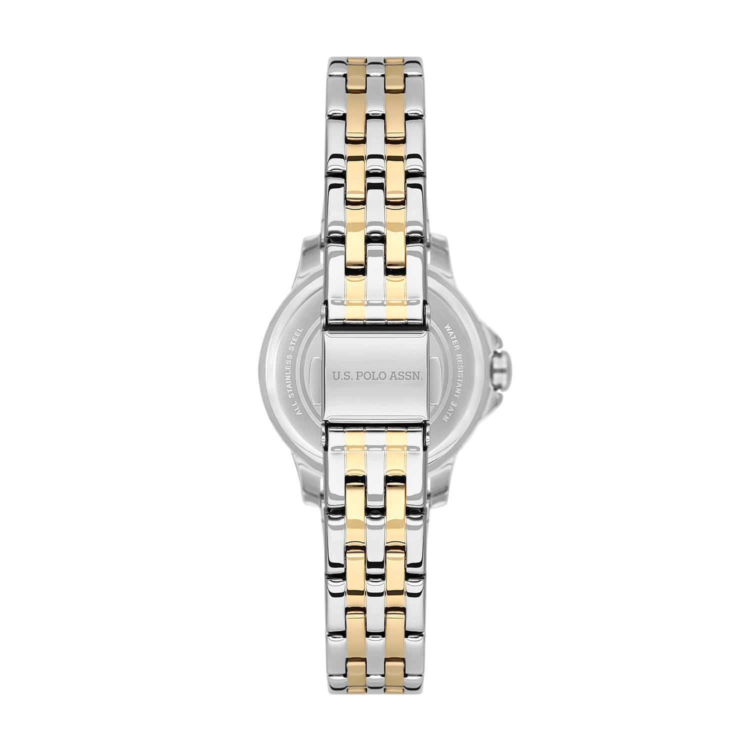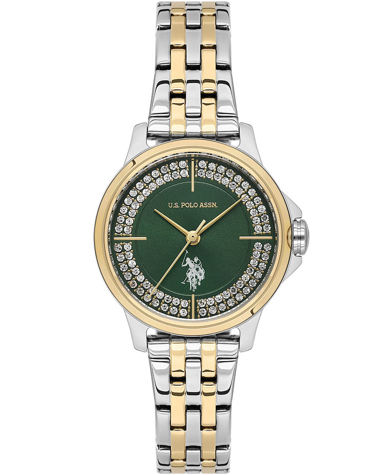 Женские элегантные часы U.S. Polo Assn. Stile USPA2081-04, кварцевый механизм с высокой точностью. Минеральное стеклоМинеральное стеклоМинеральное стекло представляет собой искусственно выращенный минерал кварца. Такое стекло отличается особой устойчивостью к повреждениям и царапинам. Уступает по некоторым качествам сапфировому стеклу. устойчивое к появлению царапин, обладающее высокой прозрачностью. Изысканный корпус изготовлен из нержавеющей стали с безелемБезельВнешний ободок, закрепляющий стекло. В спортивных часах так называется поворотное кольцо с делениями на циферблате, выполняет роль таймера – замеряет отрезки времени на шкале. Неподвижный безель – элемент декора. Однонаправленно вращающийся безель на дайверских часах позволяет фиксировать моменты погружения и выныривания на поверхность. с IP-покрытиемIP-покрытиеМетод ионного напыления. Демонстрирует повышенную устойчивость к истиранию, окислению и химическим веществам. Под воздействием высокого давления и температуры около 1500°C молекулы металла надёжно соединяются с частицами корпуса часов.. Лаконичные золотистые центральные часовая, минутная и секундная стрелки. Водонепроницаемость 3 АТМ позволяет использовать часы в повседневных условиях — при мытье рук или под лёгким дождём. Браслет выполнен из стали с IP-покрытиемIP-покрытиеМетод ионного напыления. Демонстрирует повышенную устойчивость к истиранию, окислению и химическим веществам. Под воздействием высокого давления и температуры около 1500°C молекулы металла надёжно соединяются с частицами корпуса часов. и оснащён раскладной застёжкойРаскладная застёжкаТакой тип застёжки используется только на браслетах из металла. Она никогда не раскрывается полностью, происходит разделение на 2 и более частей. Раскладывающая застёжка снизит вероятность потери часов к минимуму., обеспечивающей комфорт и уверенную фиксацию на запястье, а также добавляя завершающий штрих к этому стильному аксессуару. Циферблат с кристаллами подчёркивает изысканный характер часов, создавая универсальный образ, подходящий как для повседневных ситуаций, так и для особых случаев.