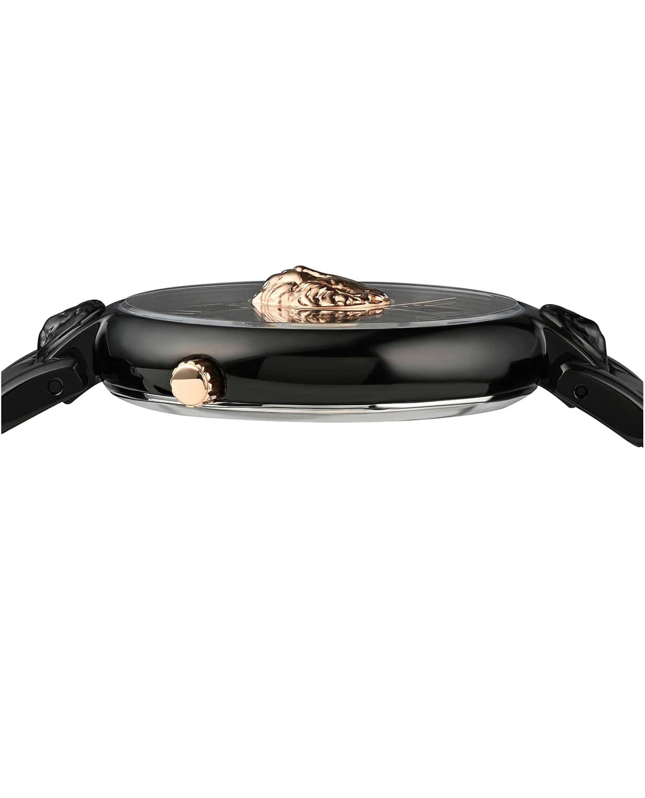 Эти эффектные дизайнерские часы станут источником восхищения, придав вашему образу еще больше загадочности. Модные женские часы Lodovica с круглым корпусом. Циферблат украшен надписью бренда и крошкой кристаллов Swarovski. Часовые метки в виде точек. В центре циферблата объемный лого в форме головы льва. Заводная головка в положении 4 часа. Стальной браслет.