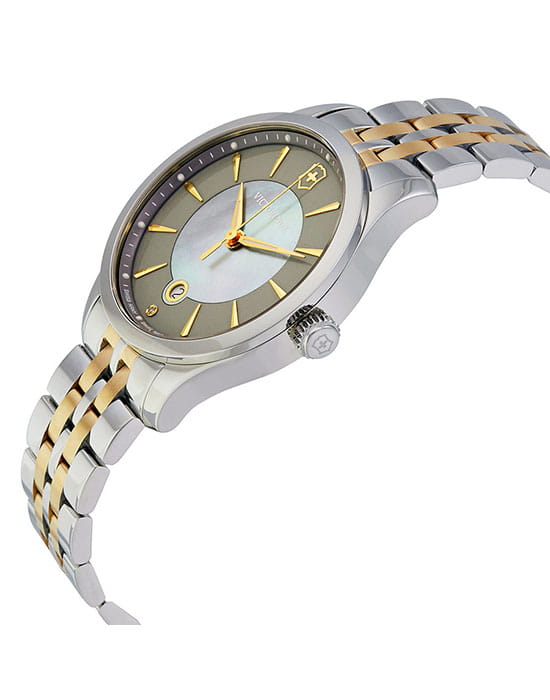 Женские швейцарские часы с сапфировым стеклом и бриллиантом Victorinox 241753, кварцевый механизм с высокой точностью. Сапфировое стекло устойчивое к появлению царапин, обладающее высокой прозрачностью. Класс водозащиты: 100 метров, позволит плавать, нырять и заниматься другими водными видами спорта. Корпус часов изготовлен из стали, цвета.