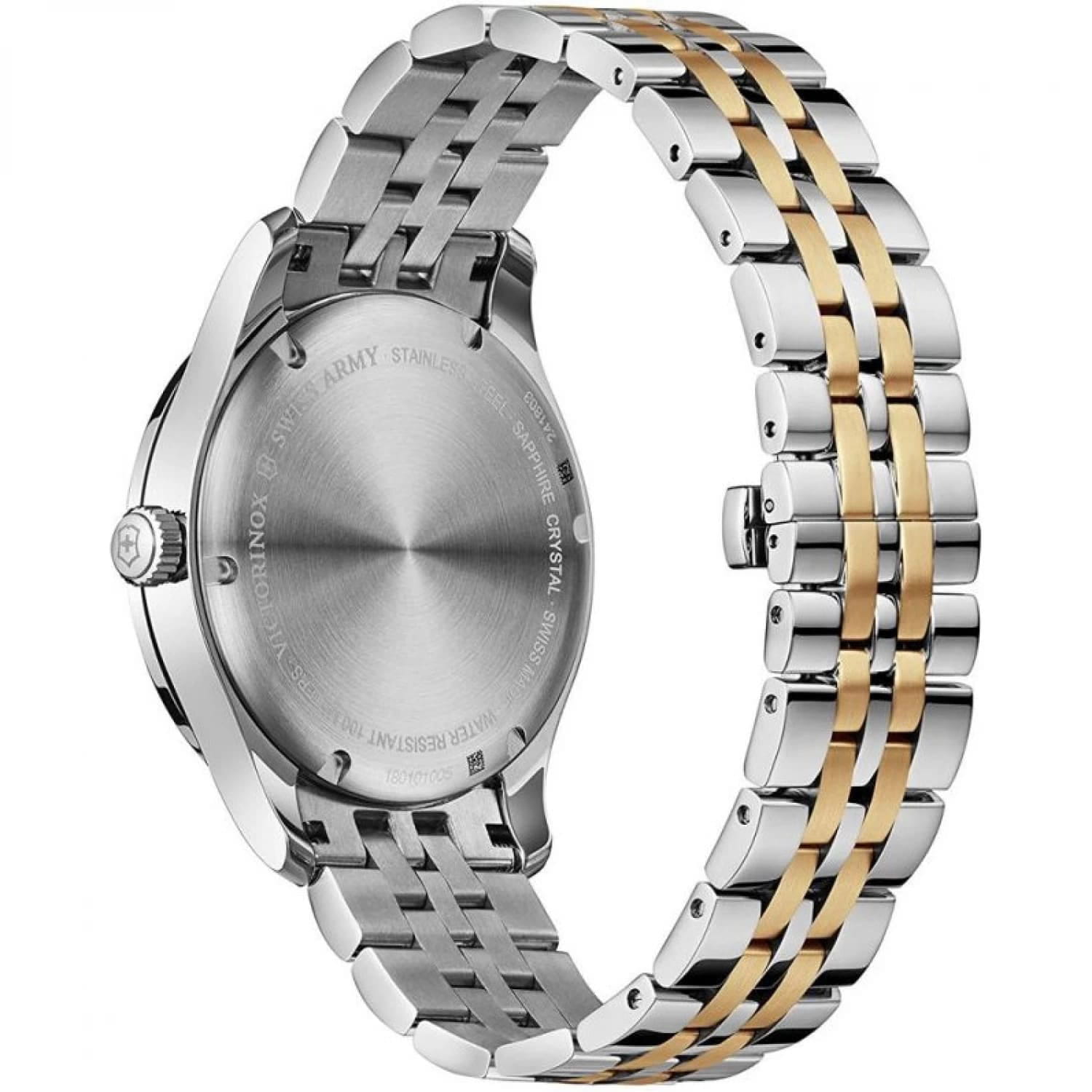 Мужские швейцарские часы с сапфировым стекломСапфировое стеклоПрочный и надёжный материал из кристалла сапфира синтетического происхождения, характеризующийся особой твёрдостью и устойчивостью к царапинам и повреждениям. Victorinox 241803, кварцевый механизм с высокой точностью. Сапфировое стеклоСапфировое стеклоПрочный и надёжный материал из кристалла сапфира синтетического происхождения, характеризующийся особой твёрдостью и устойчивостью к царапинам и повреждениям. устойчивое к появлению царапин, обладающее высокой прозрачностью. Класс водозащиты: 100 метров, позволит плавать, нырять и заниматься другими водными видами спорта. Корпус часов изготовлен из нержавеющей стали 316L. Стальной браслет с PVD-покрытиемPVDУльтратонкое покрытие наносится в технике вакуумного напыления, сочетает в себе нитрид титана особой прочности со слоем золота или оксида хрома. Несёт в себе декоративную или защитную функцию. на застёжке-бабочке с кнопкамиЗастёжка "бабочка"Такой вид застёжки дополняется предохранителями, помогающими избежать случайного раскрытия браслета. Обладают изящным исполнением. .