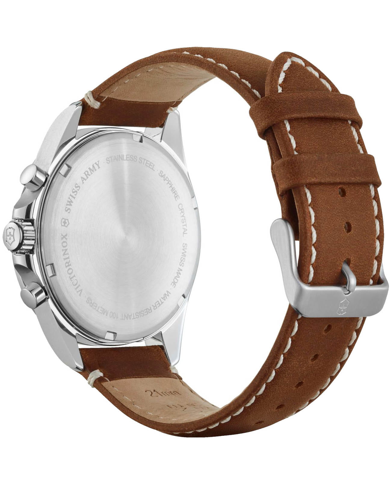 Мужские швейцарские часы-хронографХронографФункция позволяет измерять отрезки времени с особой точностью: часы, минуты, секунды. Верным признаком хронографа является наличие на циферблате 3 дополнительных окошек-счётчиков. Victorinox Fieldforce Chronograph 241854 с надёжным кварцевым механизмом. Сапфировое стеклоСапфировое стеклоПрочный и надёжный материал из кристалла сапфира синтетического происхождения, характеризующийся особой твёрдостью и устойчивостью к царапинам и повреждениям. с трёхслойным антибликовым покрытием. Корпус часов выполнен из нержавеющей стали 316L. Практичный кожаный ремешок на стандартной застёжке. Влагозащита: 100 метров, позволит плавать, нырять и заниматься другими водными видами спорта. Окошко даты находится в положении 6 часов, стрелки и метки с люминесцентным покрытиемЛюминесцентное покрытиеПозволяет считывать показания времени в темноте. Производители наносят на стрелки, часовые индексы, безель или поверхность циферблата светонакопительный состав, дающий холодное свечение., тахиметрТахиметрРазмеченная шкала, располагается на ободке или безеле часов. Тахиметр позволяет рассчитать скорость на определённом участке пути, расстояние измеряется в километрах или милях..