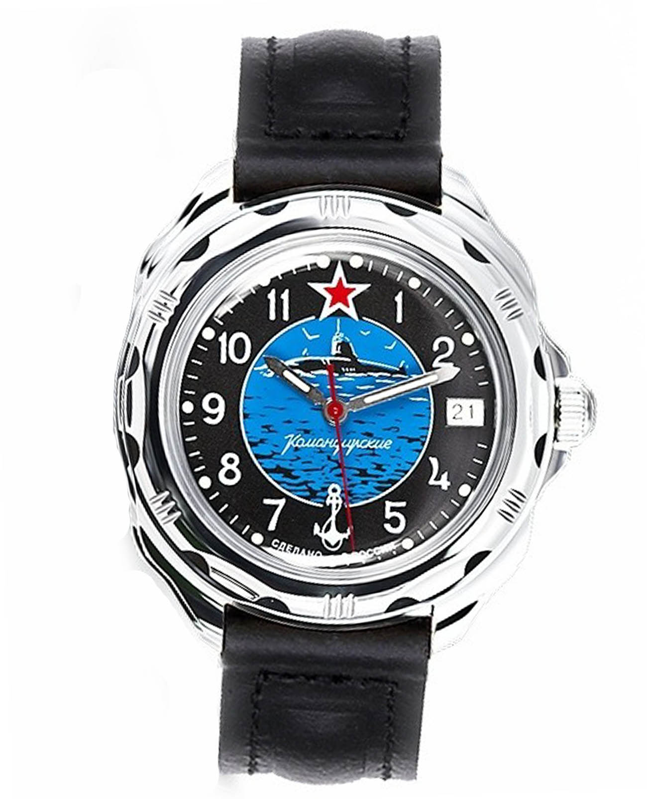 Механические часы Восток Командирские 211163 с гарантией. Механизм "Восток 2414А" калибра 24 мм с центральной секундной стрелкой. В механизме 17 камней. Запас хода не менее 36 часов. Противоударное устройство узла баланса. Поворачивающийся безель. На стрелки и часовые метки нанесен светонакопительный состав для возможности считывания времени в темноте. Циферблат закрывает выпуклое органическое стекло. Корпус выполнен из часовой латуни с покрытием хромом. Завинчивающаяся заводная головка. Задняя крышка из нержавеющей стали. Водозащита модели составляет 2 атмосферы (WR20). Толщина корпуса 11 мм. Ремешок из натуральной кожи с классической застежкой.
