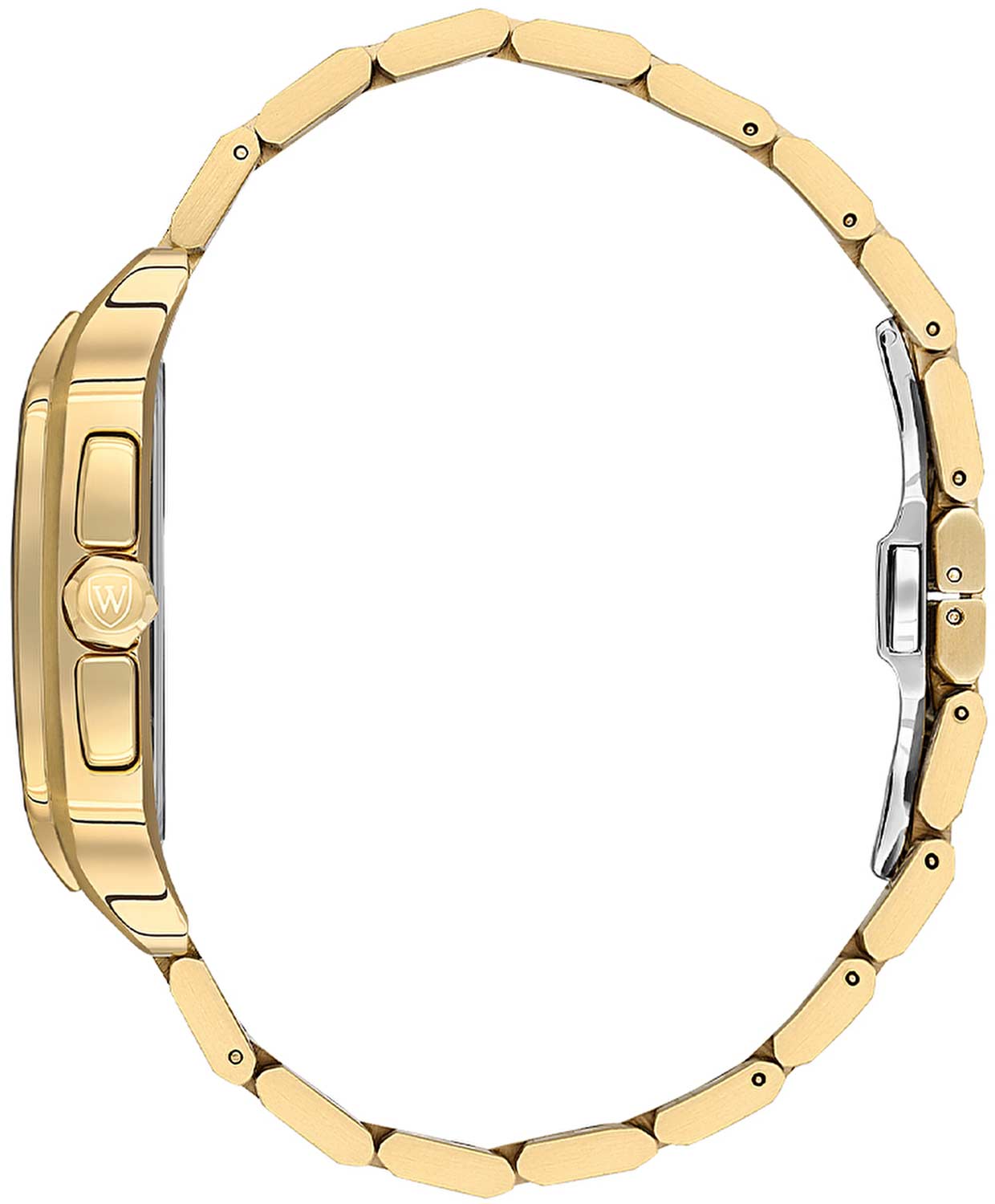 Мужские кварцевые часы Wainer WA.18090-G — это стильный аксессуар, сочетающий в себе швейцарское качество и изысканный дизайн. Модель выполнена в квадратной форме из стали 316L с PVD-покрытиемPVDУльтратонкое покрытие наносится в технике вакуумного напыления, сочетает в себе нитрид титана особой прочности со слоем золота или оксида хрома. Несёт в себе декоративную или защитную функцию., что придаёт ей благородный внешний вид и устойчивость к царапинам. Корпус украшен декоративными винтами, подчёркивая внимание к деталям. Циферблат белого цвета выполнен по технологии , создающей эффект солнечных лучей, а его поверхность дополнена штриховыми метками и римскими цифрами. Секундная стрелка на конце декорирована буквой W, добавляя модели индивидуальности. Защиту механизма обеспечивает сапфировое стеклоСапфировое стеклоПрочный и надёжный материал из кристалла сапфира синтетического происхождения, характеризующийся особой твёрдостью и устойчивостью к царапинам и повреждениям., устойчивое к повреждениям. Окошко даты расположено в положении 4 часов, а гранёная заводная головка с защитой оснащена фирменным логотипом. Браслет из стали 316L с PVD-покрытием шириной 22 мм оснащён Раскладная застёжкаРаскладная застёжкаТакой тип застёжки используется только на браслетах из металла. Она никогда не раскрывается полностью, происходит разделение на 2 и более частей. Раскладывающая застёжка снизит вероятность потери часов к минимуму., обеспечивающей комфорт и надёжную фиксацию на запястье. Водонепроницаемость позволяет использовать модель при мытье рук или под лёгким дождём. Стрелки с люминесцентным покрытиемЛюминесцентное покрытиеПозволяет считывать показания времени в темноте. Производители наносят на стрелки, часовые индексы, безель или поверхность циферблата светонакопительный состав, дающий холодное свечение. обеспечивают отличную читаемость даже в условиях слабого освещения. Механизм калибра Ronda 5030.D гарантирует точность хода и надёжность. Эти часы станут универсальным аксессуаром для тех, кто ценит сочетание стиля, функциональности и швейцарского мастерства — идеальный выбор для повседневной носки и торжественных случаев.