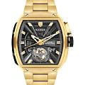 Мужские механические часы-скелетон с автоподзаводом Wainer WA.25150-E сочетает элегантный дизайн и высокое качество исполнения. Бочкообразный корпус выполнен из нержавеющей стали с PVD-покрытиемPVDУльтратонкое покрытие наносится в технике вакуумного напыления, сочетает в себе нитрид титана особой прочности со слоем золота или оксида хрома. Несёт в себе декоративную или защитную функцию. золотистого цвета, диаметром 46 х 47мм и толщиной 14 мм, обеспечивает прочность и долговечность. Циферблат с метками в виде штрихов и украшен фирменным логотипом Wainer. Сапфировое стеклоСапфировое стеклоПрочный и надёжный материал из кристалла сапфира синтетического происхождения, характеризующийся особой твёрдостью и устойчивостью к царапинам и повреждениям. защищает дисплей от царапин и механических повреждений. Стальной браслет с PVD-покрытиемPVDУльтратонкое покрытие наносится в технике вакуумного напыления, сочетает в себе нитрид титана особой прочности со слоем золота или оксида хрома. Несёт в себе декоративную или защитную функцию. на застёжке-бабочкеЗастёжка "бабочка"Такой вид застёжки дополняется предохранителями, помогающими избежать случайного раскрытия браслета. Обладают изящным исполнением. обеспечивает комфортное ношение. Водонепроницаемость до 30 метров позволит защитить корпус от случайных брызг или капель дождя. Рифленая заводная головка с защитой. Прозрачная задняя крышка. Стрелки с люминесцентным покрытиемЛюминесцентное покрытиеПозволяет считывать показания времени в темноте. Производители наносят на стрелки, часовые индексы, безель или поверхность циферблата светонакопительный состав, дающий холодное свечение., улучшая читаемость в условиях недостаточного освещения. Wainer — это стильный и надежный аксессуар для тех, кто ценит швейцарское качество и современные технологии.