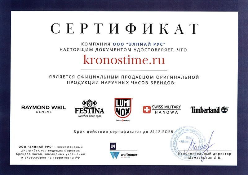 Все модели наручных часов в интернет-магазине KronosTime являются оригинальными, это подтверждается комплектом официальных документов и гарантией производителей.