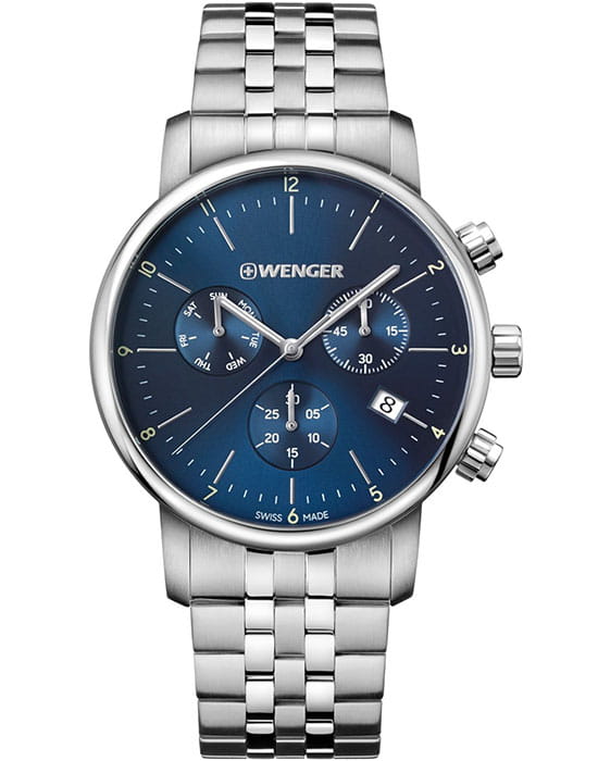 Мужские швейцарские часы с хронографом Wenger 01.1743.105, кварцевый механизм с высокой точностью. Класс водозащиты: 100 метров, позволит плавать, нырять и заниматься другими водными видами спорта. Корпус часов изготовлен из стали, цвета.